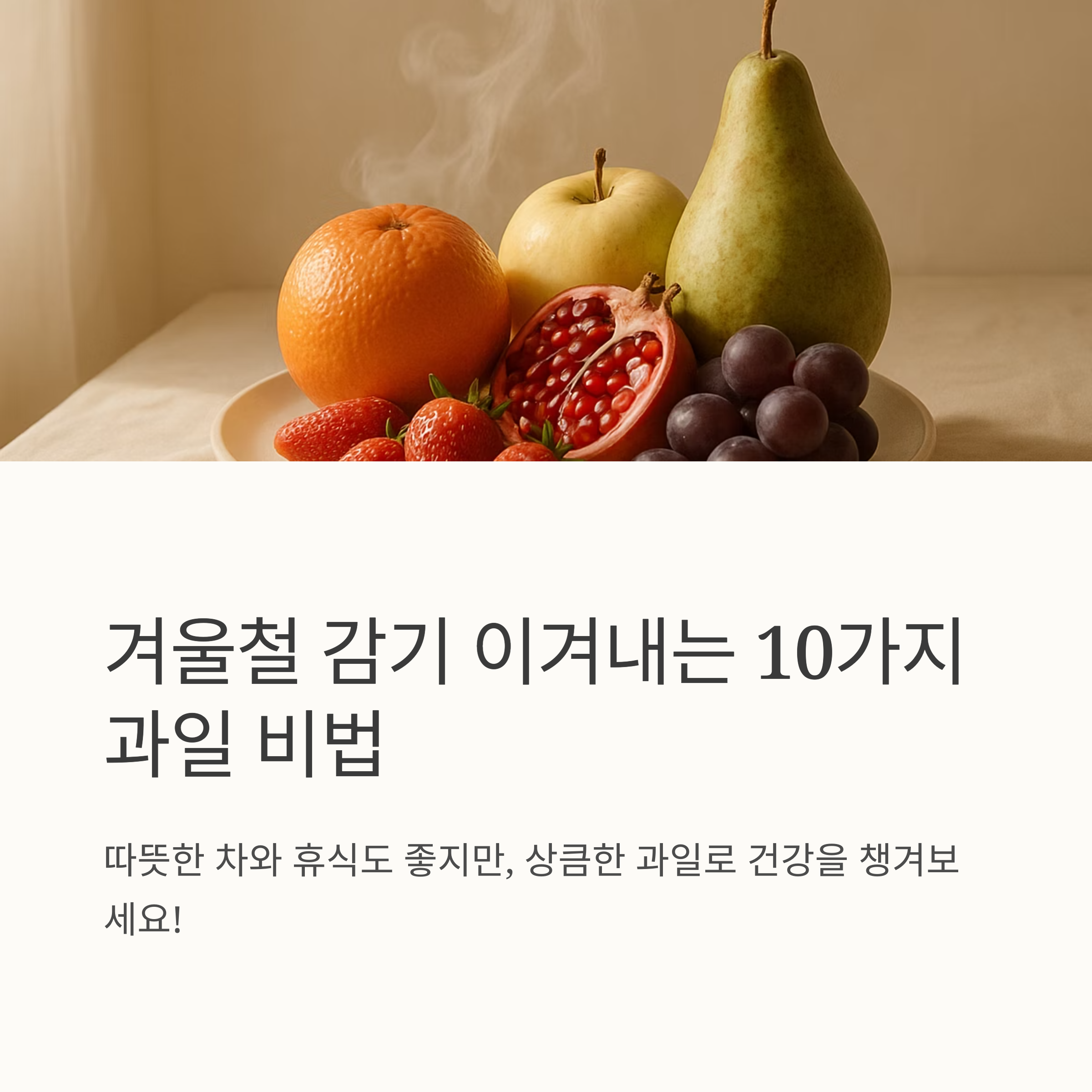 겨울철 감기 때문에 힘드시죠? 따뜻한 차와 푹 쉬는 것도 중요하지만, 상큼한 감기에 좋은 과일로 건강을 챙겨보는 건 어떨까요? 감기에 좋은 과일 10가지와 함께 건강한 겨울을 보내세요!