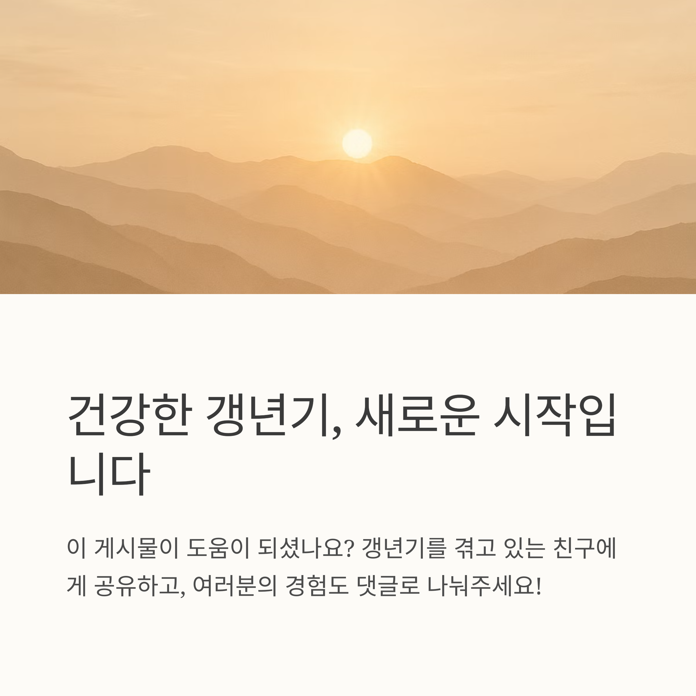 갱년기는 힘들지만, 내 몸과 마음에 귀 기울이고 잘 관리하면 건강하게 극복할 수 있어요. 꾸준한 노력으로 갱년기를 잘 이겨내고, 새로운 삶의 활력을 찾아가는 우리가 되길 바랍니다. 우리 함께 힘내요! 이 글이 여러분의 갱년기 건강 관리에 조금이나마 도움이 되었으면 좋겠습니다.