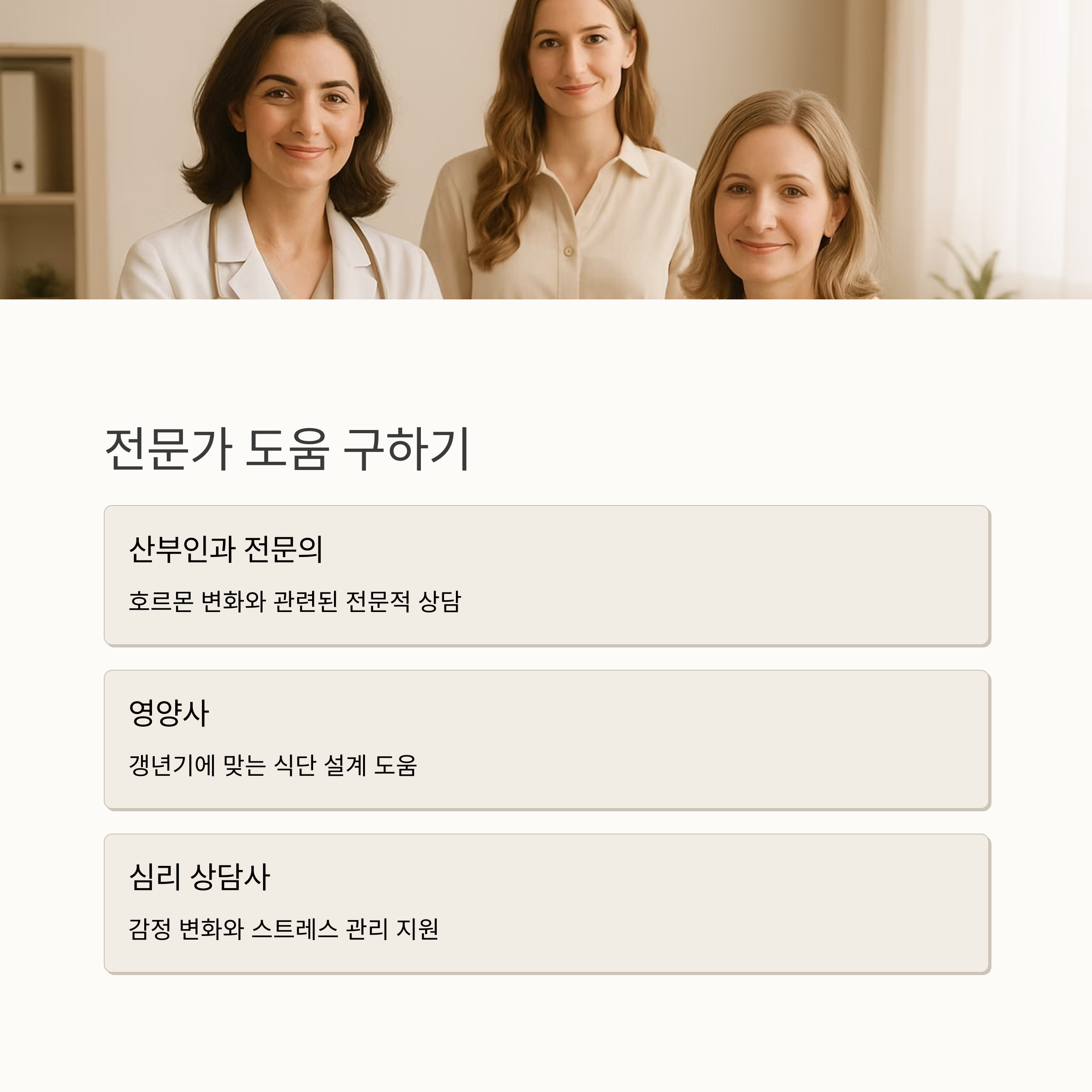 하지만 지금은 달라요. 제가 겪었던 어려움을 통해 갱년기를 잘 극복하는 방법들을 알게 되었거든요. 가장 중요한 건 나에게 맞는 대처법을 찾는 거예요. 저는 운동과 충분한 수면, 그리고 마음 편히 쉴 수 있는 시간을 갖는 게 도움이 많이 됐어요. 그리고 가족과 친구들에게 솔직하게 제 심정을 이야기하고 도움을 청하는 것도 큰 힘이 되었죠. 여러분도 혼자 힘들어하지 마시고 주변 사람들에게 도움을 구하세요.
