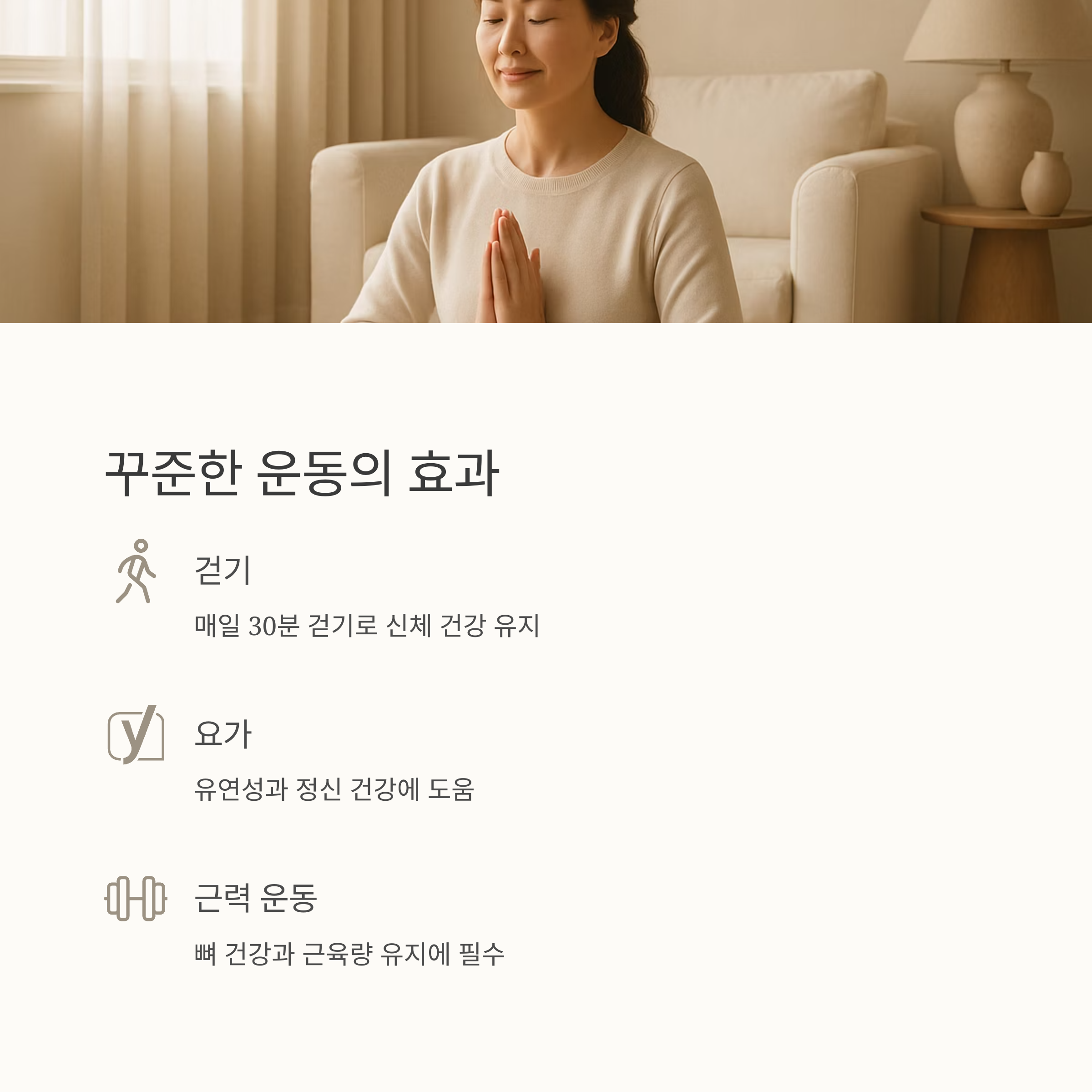 2. 꾸준한 운동: 매일 30분 정도 걷기, 요가, 필라테스 등 가볍게 몸을 움직여 보세요. 근력 운동도 잊지 마세요. 운동은 몸뿐만 아니라 마음까지 건강하게 해준답니다.