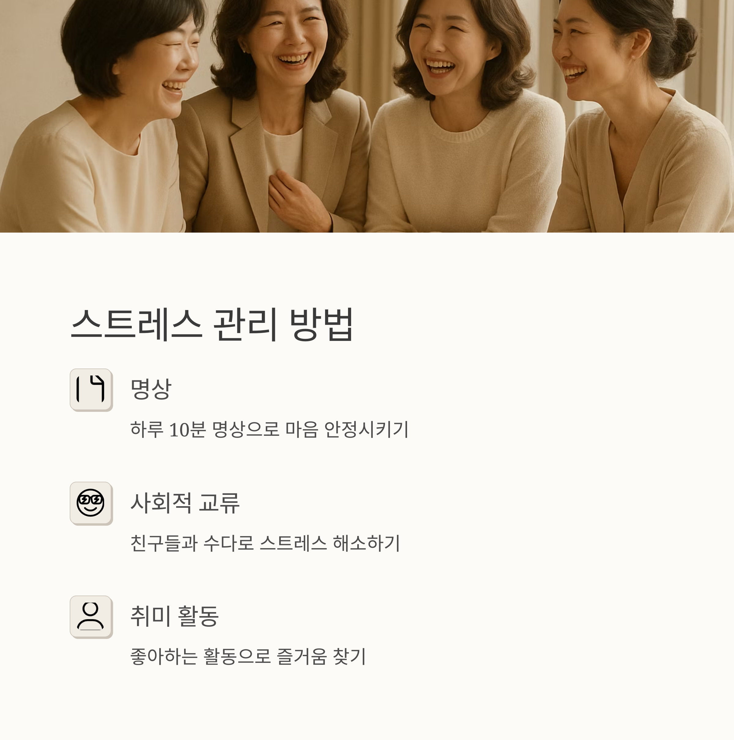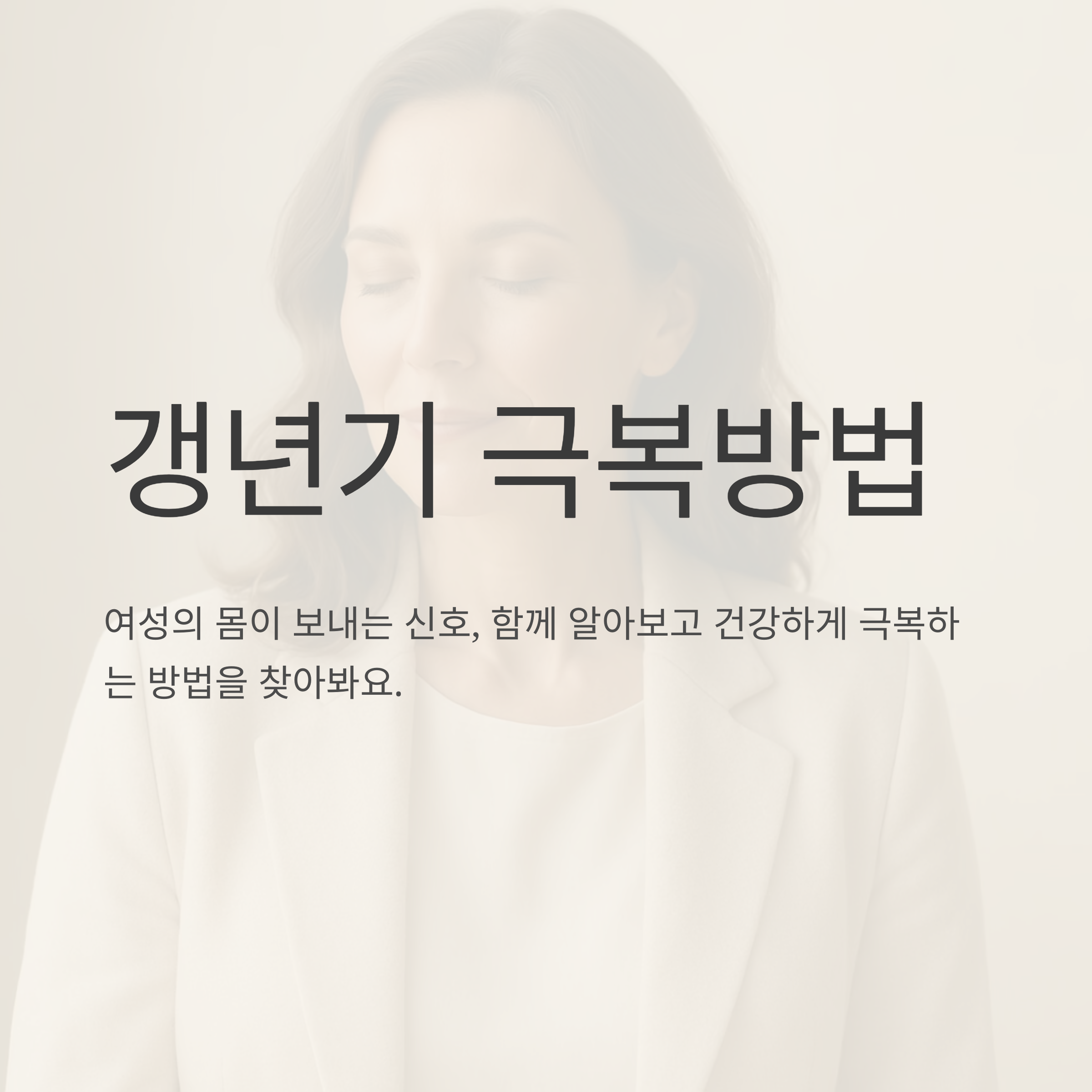 갱년기, 이제 두려워하지 마세요. 내 몸과 마음의 변화를 이해하고, 나에게 맞는 방법을 찾아 건강하고 행복한 삶을 디자인해 나가요. 우리는 충분히 잘 해낼 수 있습니다.