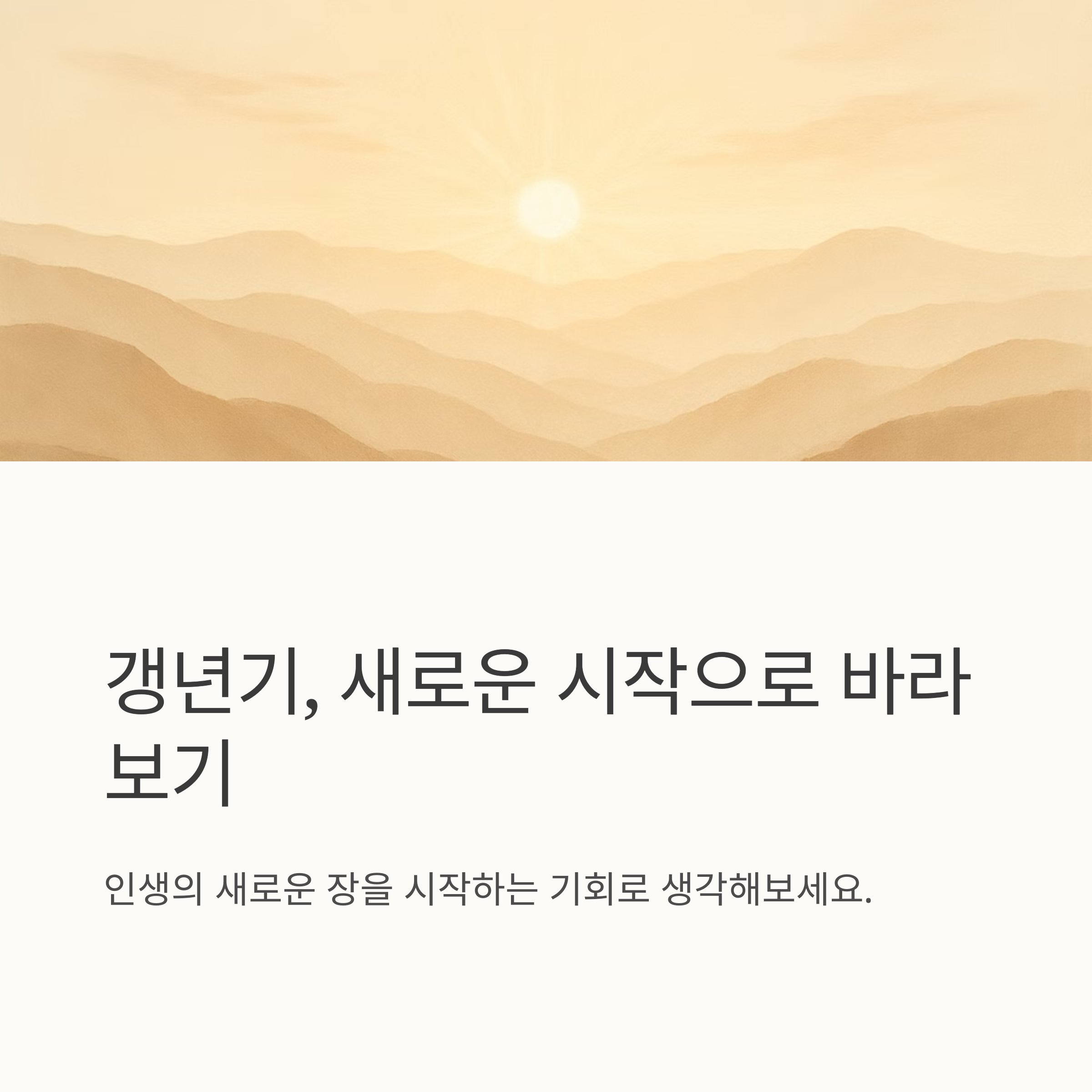 갱년기는 긍정적이고 적극적으로 대처해야 할 인생의 새로운 단계입니다. 몸과 마음의 변화를 받아들이고, 자신에게 맞는 관리 방법을 찾아 건강하고 행복한 중년을 만들어 나가길 바랍니다. 이 글이 여러분의 갱년기 여정에 조금이나마 도움이 되길 바라며, 다음에 더 유익한 정보로 다시 찾아뵙겠습니다!