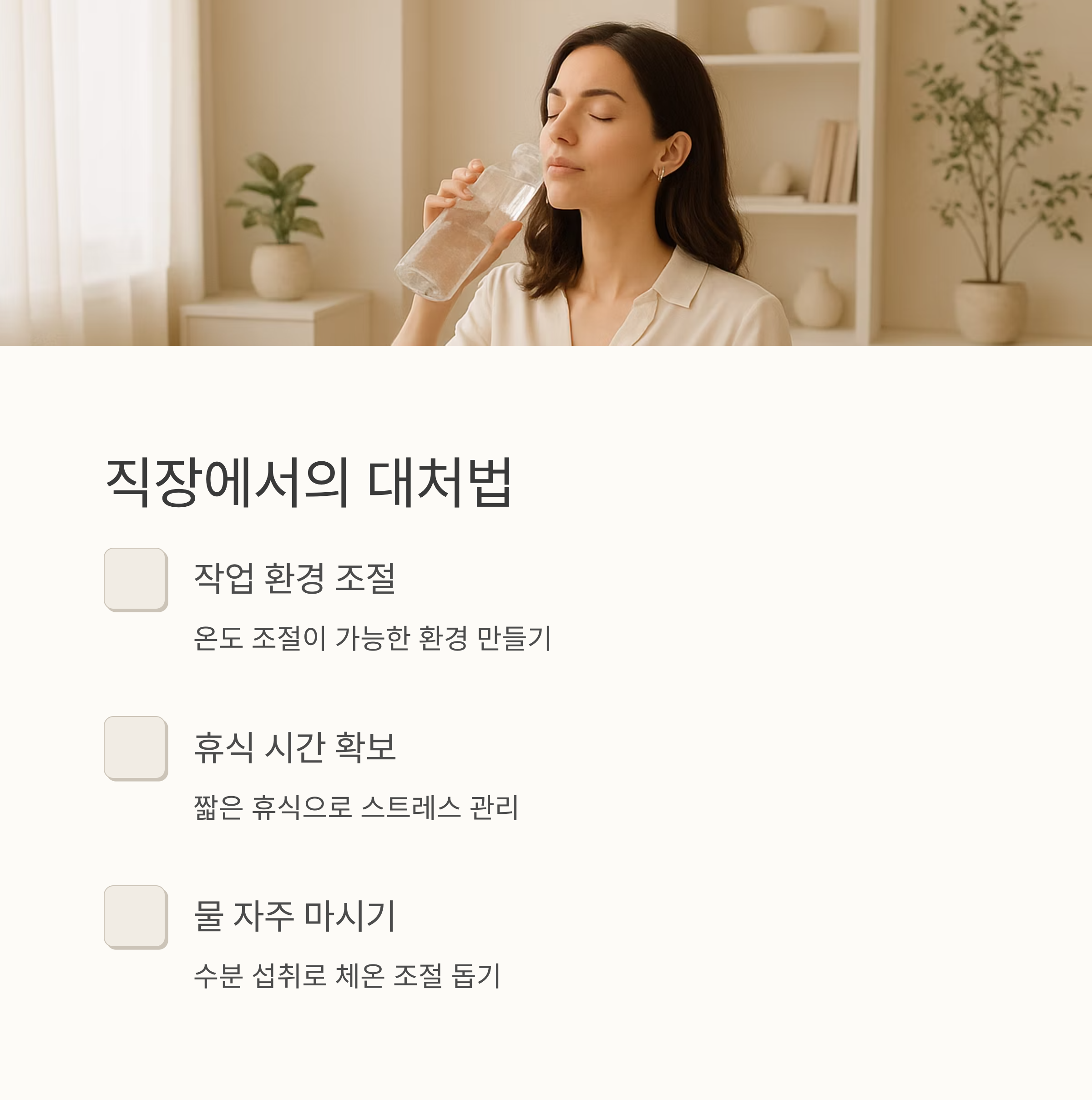 자, 여성 갱년기의 주요 증상들을 이야기해볼까요? 가장 흔하게 겪는 증상은 역시 안면 홍조와 밤에 땀을 많이 흘리는 거예요. 마치 갑자기 열이 오르는 듯 얼굴이 화끈거리고, 밤에 잠자리에 들었다가 땀으로 흠뻑 젖어 깨는 경험, 많이들 하시죠? 이건 체온 조절 기능이 망가진 것이 아니라 에스트로겐 감소로 인해 체온 조절 중추가 민감해진 것이랍니다.
