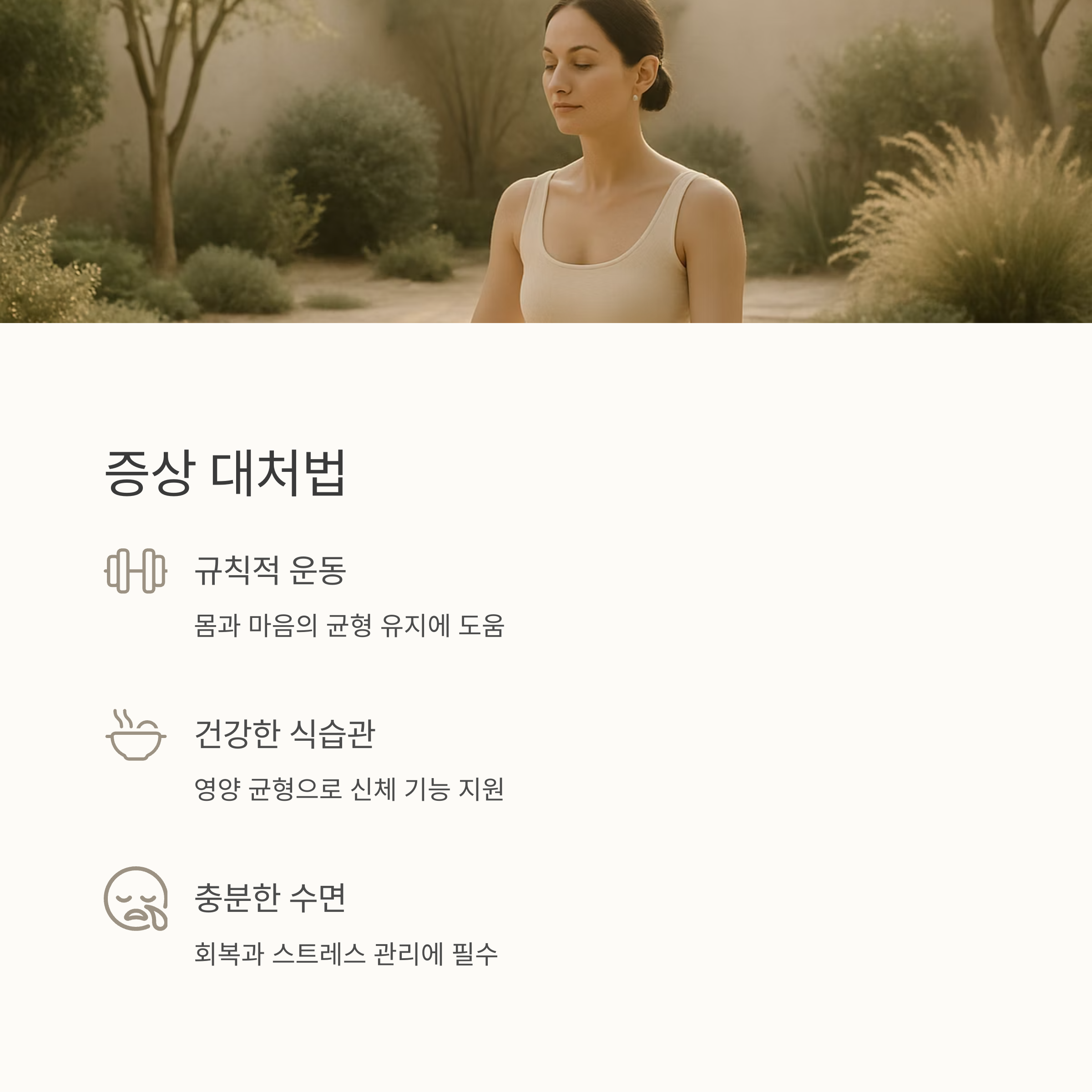 예를 들어, 규칙적인 운동과 건강한 식습관은 몸과 마음의 균형을 유지하는 데 큰 도움이 되죠. 충분한 수면을 취하고 스트레스를 관리하는 것도 중요해요. 마음을 편안하게 해줄 취미 활동을 찾아보는 것도 좋은 방법이죠.