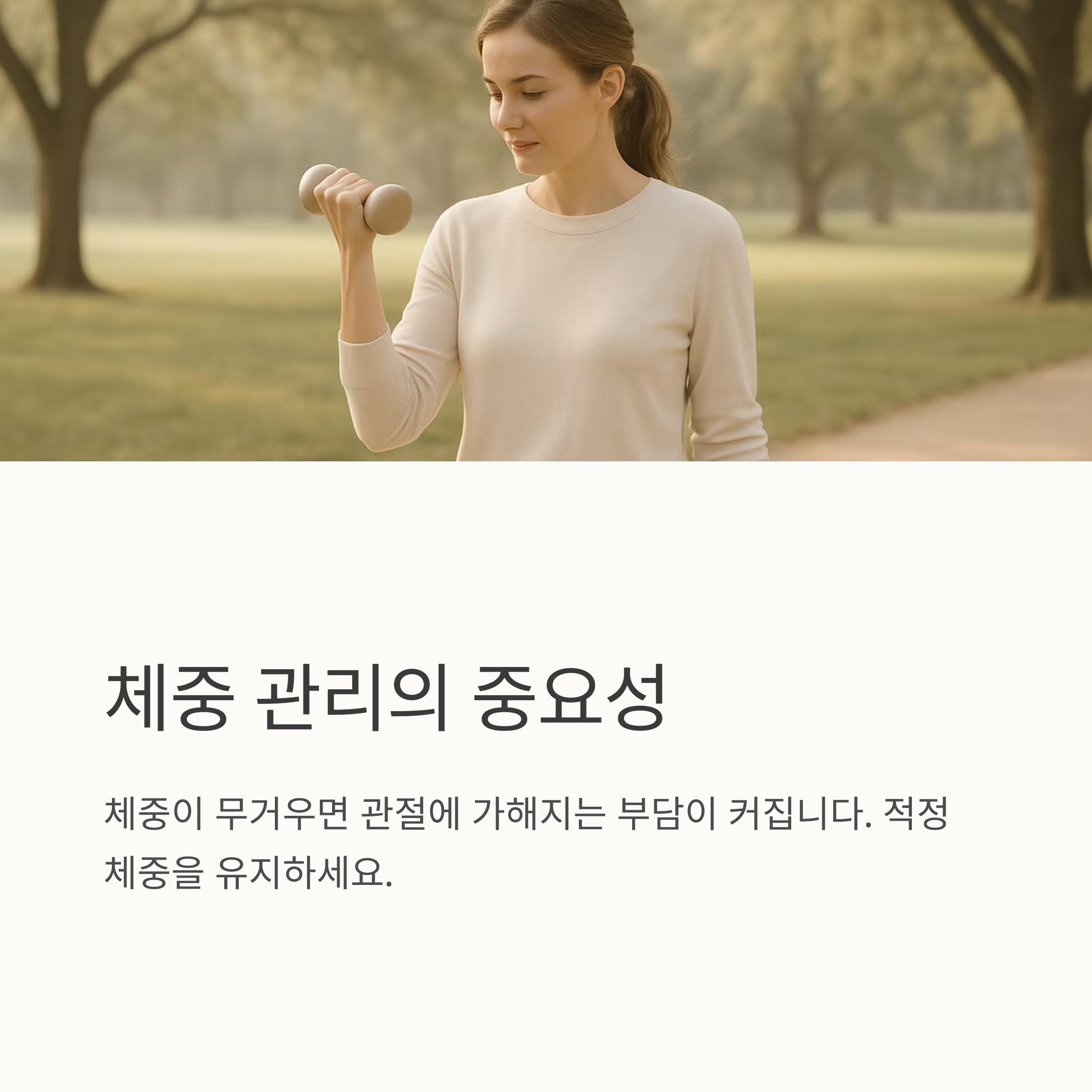 관절염 초기증상에는 생활 습관 개선만으로도 증상을 완화하고 질병의 진행 속도를 늦출 수 있어요. 먼저 체중 관리가 중요해요. 체중이 무거우면 관절에 가해지는 부담이 커지기 때문에, 적정 체중을 유지하는 것이 관절 건강에 큰 도움이 됩니다. 또한, 하이힐이나 딱딱한 신발은 피하고, 무릎을 꿇거나 쪼그려 앉는 자세도 삼가야 해요.