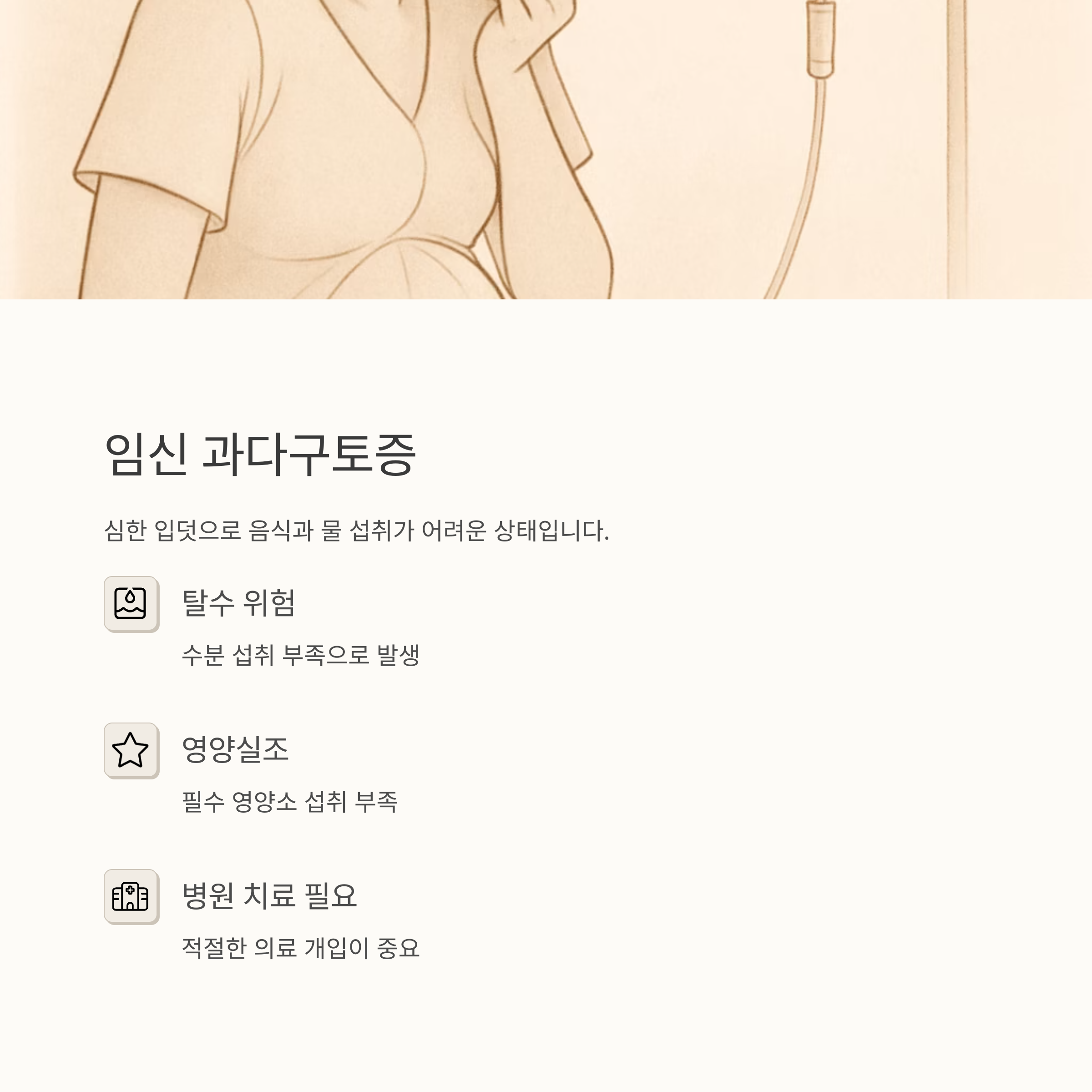 심한 탈수와 영양실조를 유발할 수 있으므로, 병원에 방문하여 적절한 치료를 받는 것이 중요합니다. 임신 중에는 몸의 변화에 민감하게 반응하고, 필요한 영양분을 충분히 섭취하는 것이 중요하며, 정기적인 검진을 통해 건강 상태를 체크하는 것이 좋습니다.