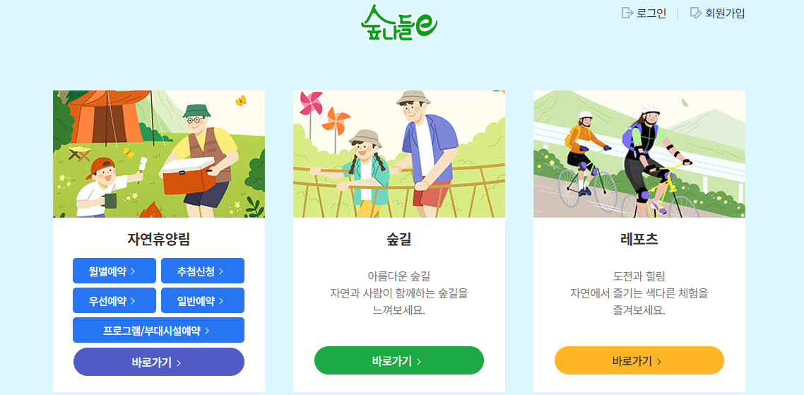 1. 국립자연휴양림 예약통합시스템, 바로 여기!