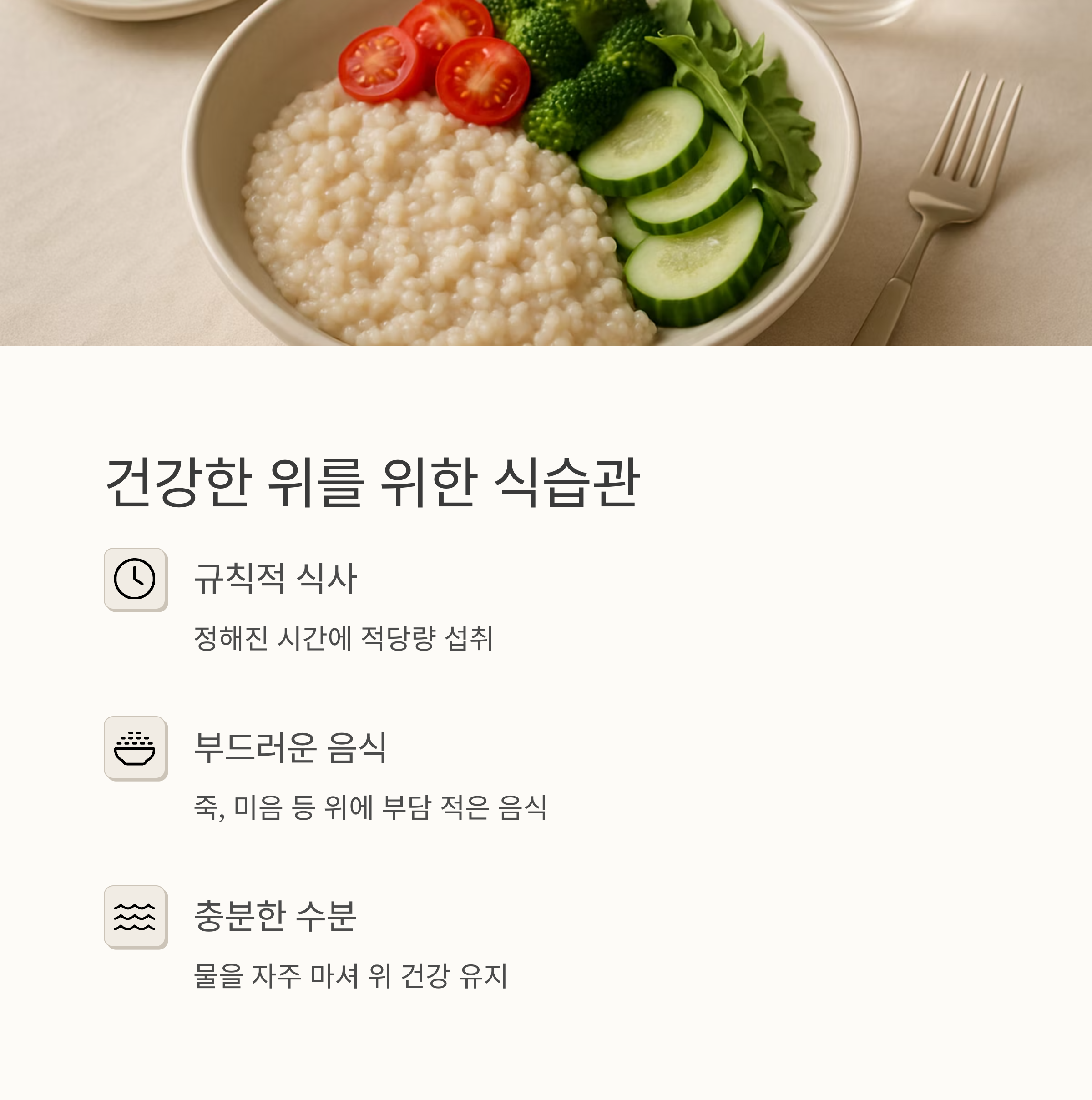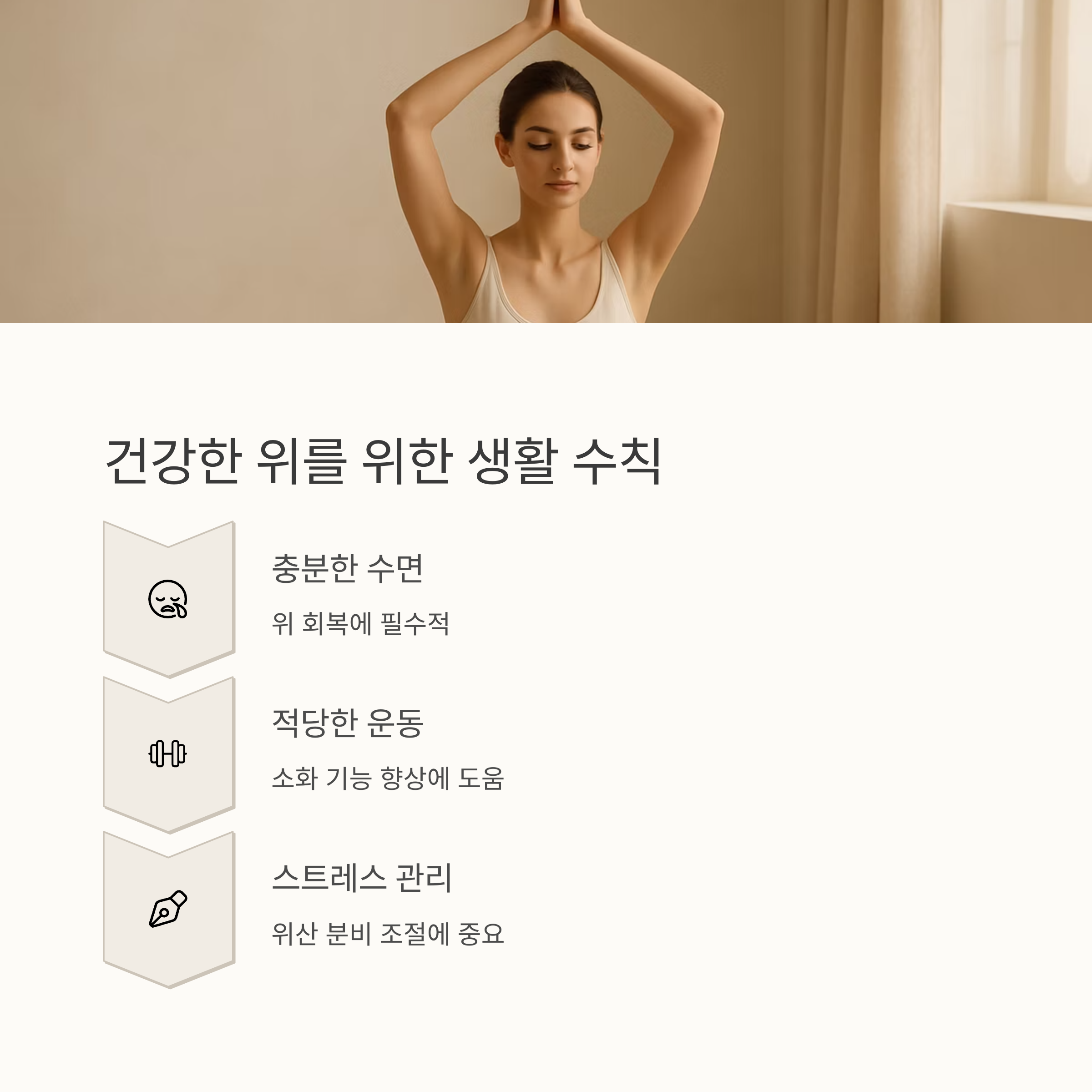 적당한 운동과 충분한 수면도 빼놓을 수 없습니다. 위 건강을 위한 생활 습관 개선은 꾸준히 노력해야 하는 부분입니다. 작은 습관 하나하나가 건강한 위를 만드는 데 큰 도움이 될 것입니다.