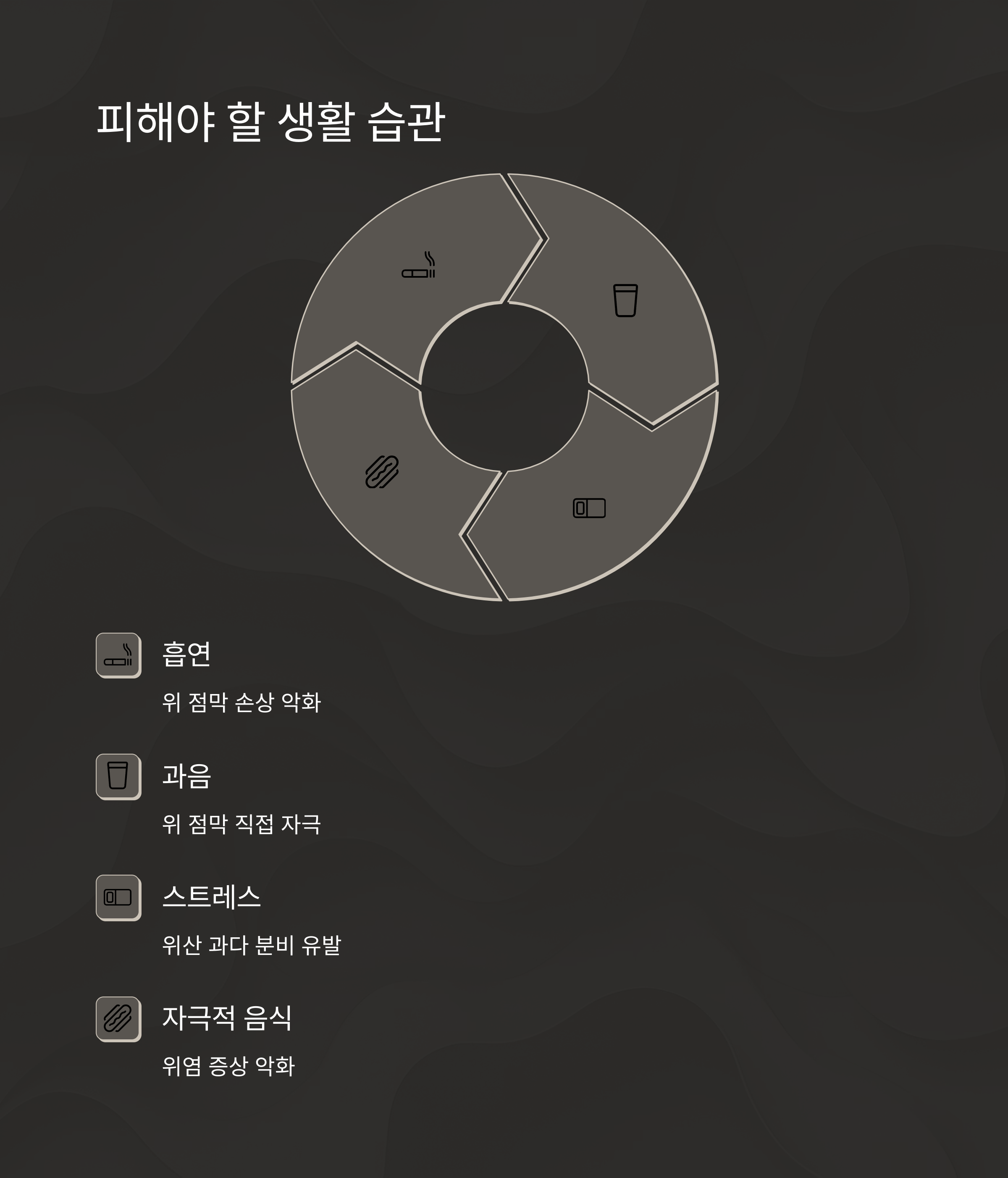 적당한 운동과 충분한 수면도 빼놓을 수 없습니다. 위 건강을 위한 생활 습관 개선은 꾸준히 노력해야 하는 부분입니다. 작은 습관 하나하나가 건강한 위를 만드는 데 큰 도움이 될 것입니다.