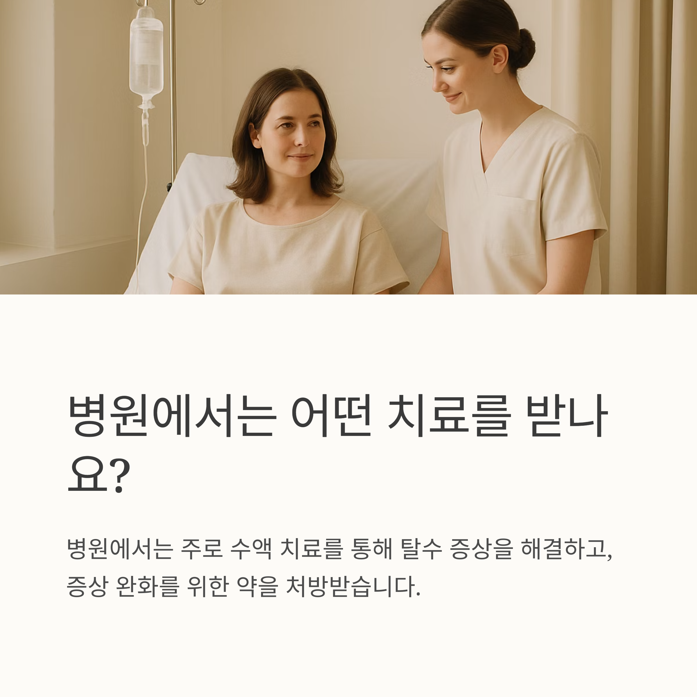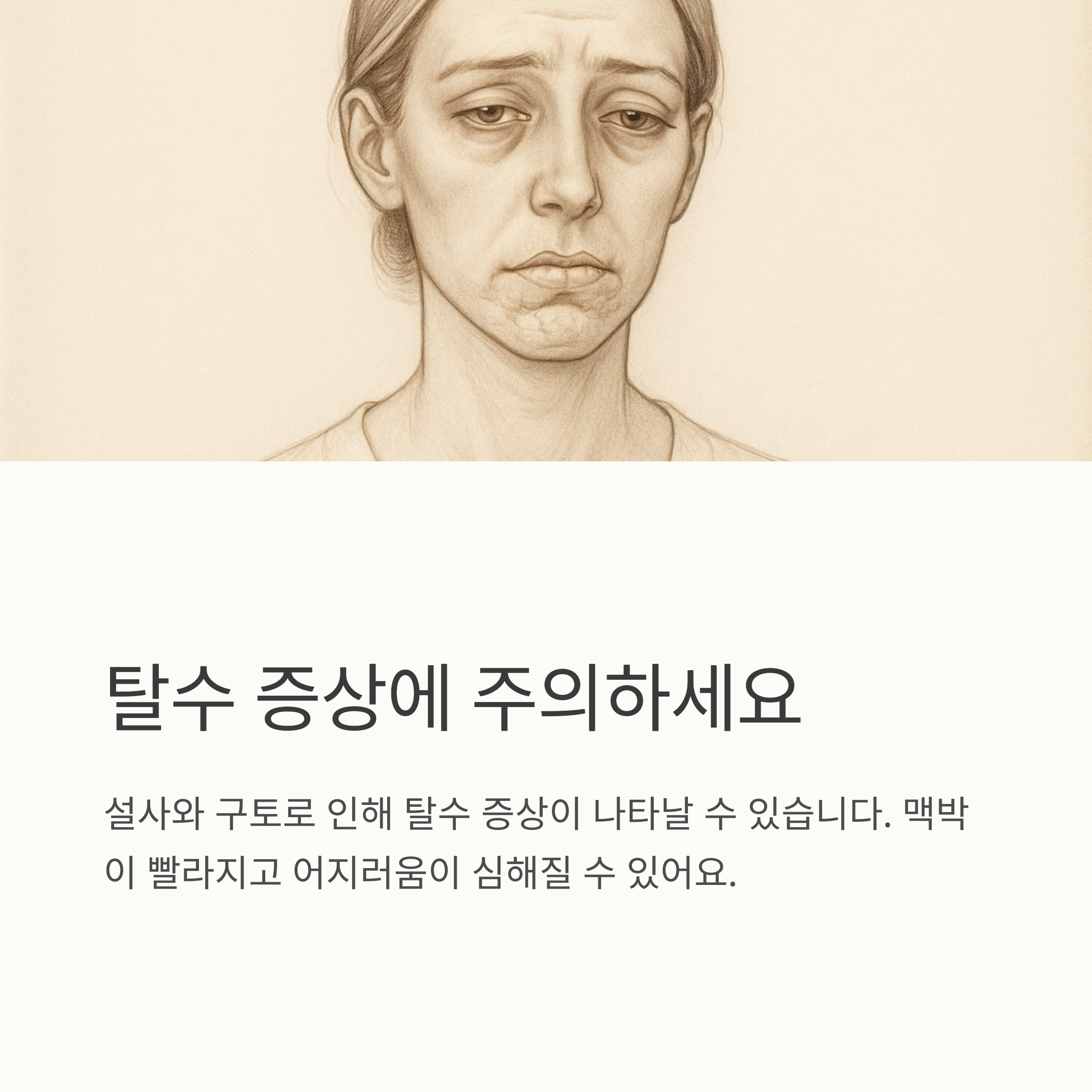 병원에서는 탈수 증상을 해결하기 위해 수액 치료를 받았고, 증상을 완화하는 약을 처방받았답니다. 전문의의 진료를 받는 것이 가장 안전하고 빠른 회복에 도움이 되는 길이에요. 방치하면 더 심각해질 수 있으니 주저하지 말고 병원을 찾아야 합니다. 늦으면 탈수 증상이 심해져서 위험해질 수도 있다는 걸 명심하세요.