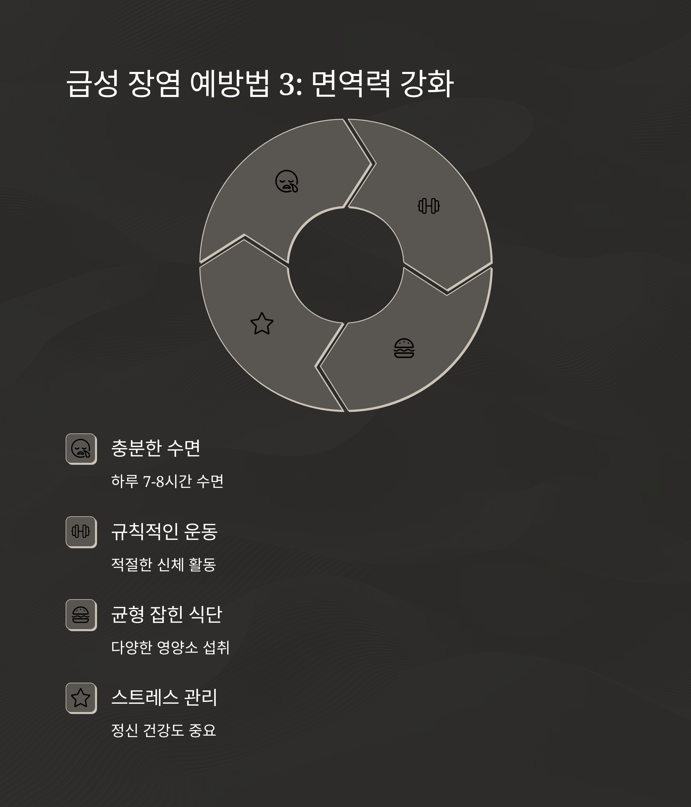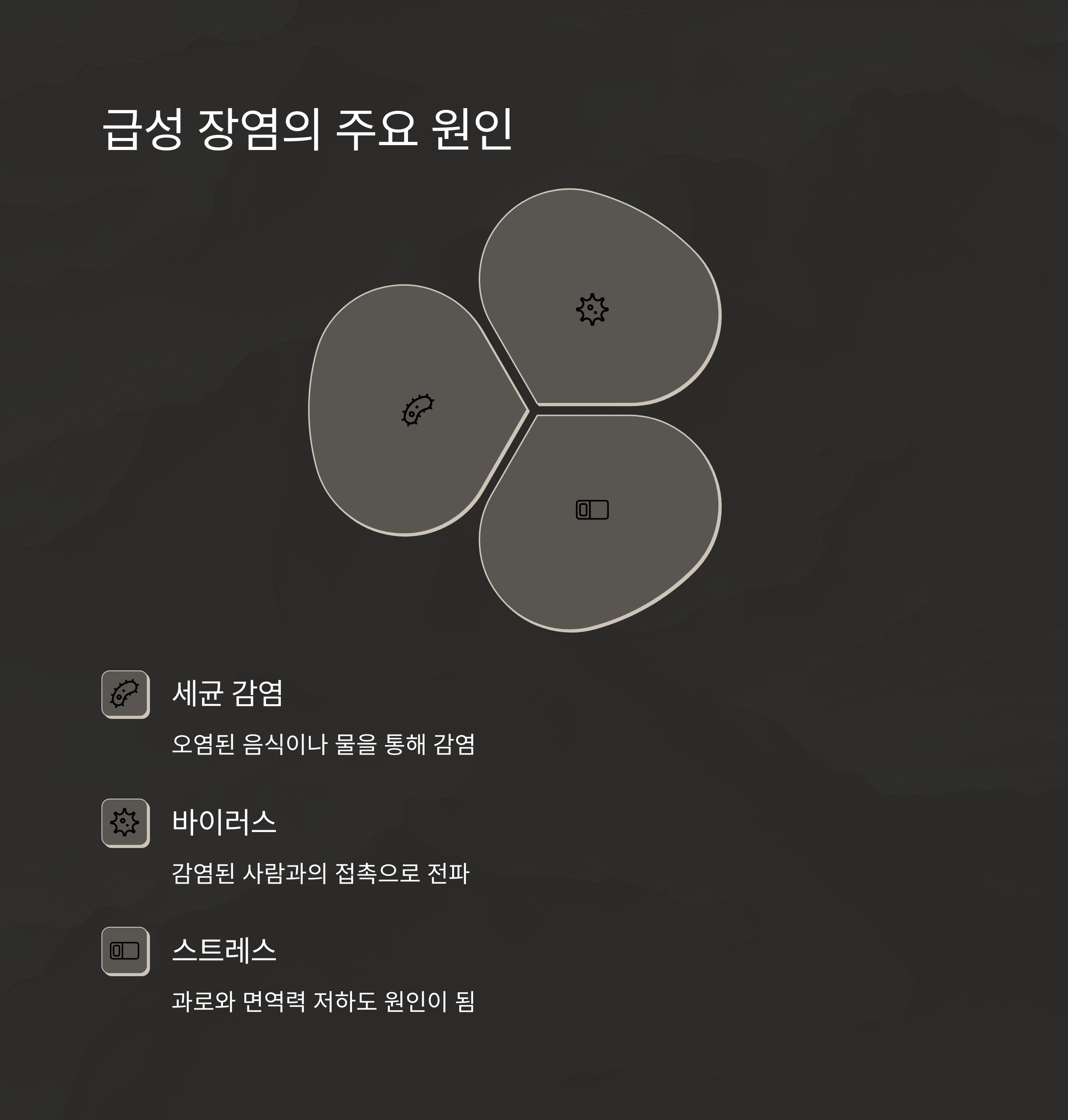 또, 스트레스나 과로, 면역력 저하 등도 급성 장염을 유발하는 원인이 될 수 있다고 하네요. 평소 건강 관리에 신경 쓰는 것이 얼마나 중요한지 다시 한번 느꼈어요. 평소 균형 잡힌 식단과 충분한 수면, 규칙적인 운동을 통해 면역력을 높이는 것이 중요하겠죠. 건강한 몸은 건강한 마음에서 시작된다고 하니까요.