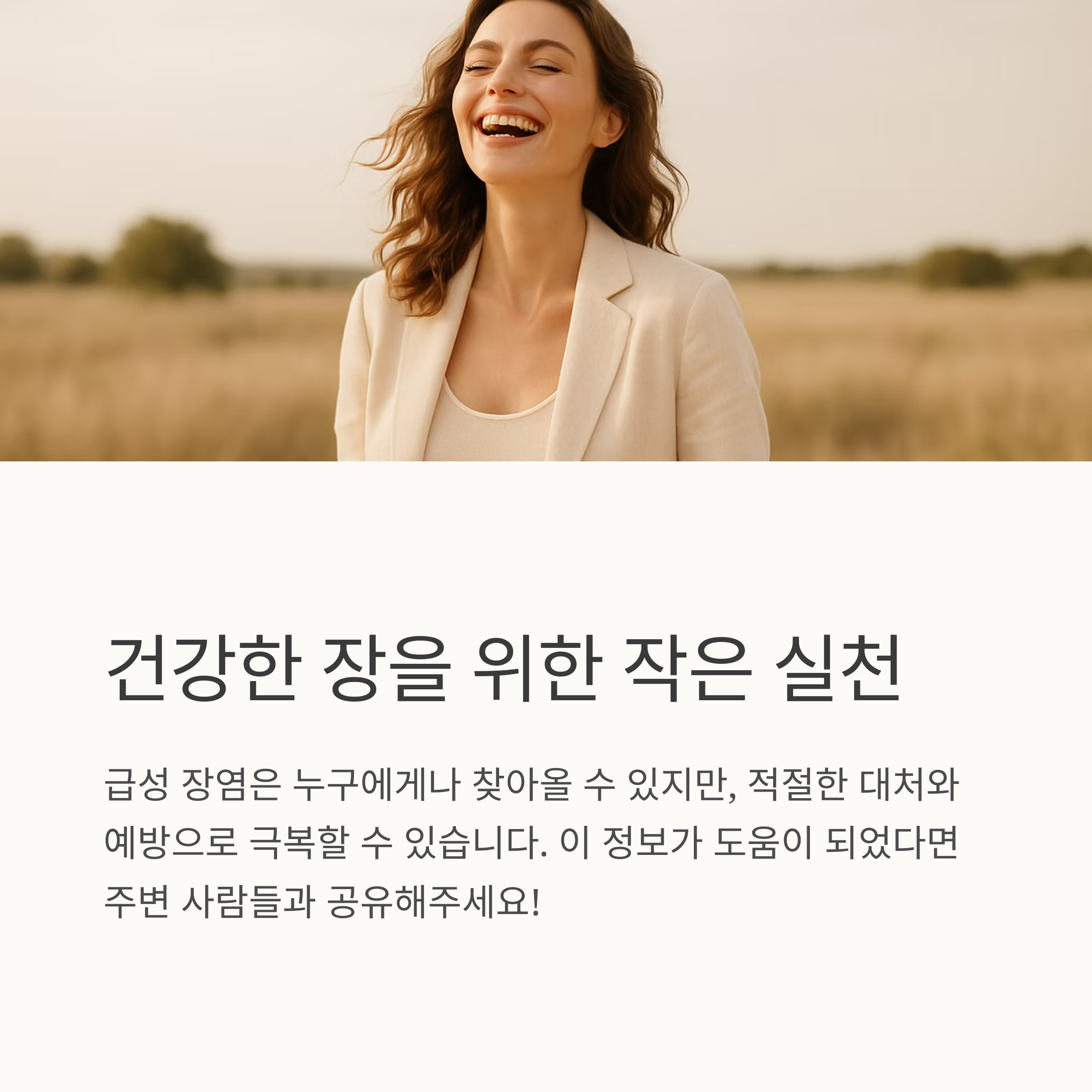 급성 장염은 누구에게나 찾아올 수 있는 질병이지만, 적절한 대처와 예방으로 충분히 극복할 수 있어요. 이 글이 여러분의 건강 관리에 조금이나마 도움이 되기를 바랍니다. 건강하게 잘 이겨내시길 바라요! 힘든 시간 잘 이겨내시고, 건강한 모습으로 다시 만나요!