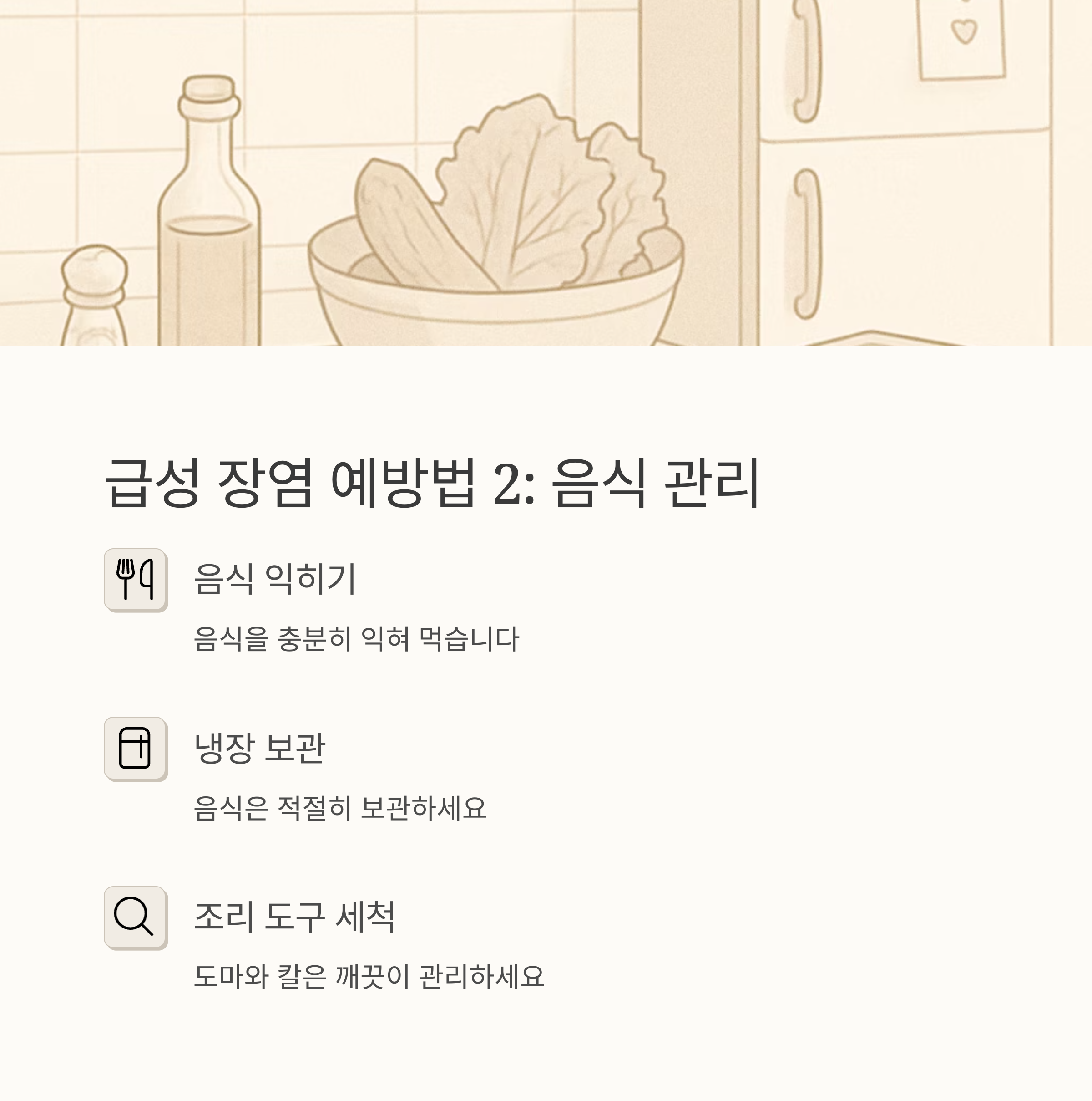 급성 장염을 예방하기 위해서는 평소 손을 자주 씻고, 음식을 깨끗하게 조리하고 섭취하는 것이 중요해요. 특히 날것으로 먹는 음식은 더욱 주의해야 하고, 익히지 않은 음식은 절대 먹지 않는 것이 좋아요. 저는 이제부터 음식 위생에 더욱 신경 쓰려고요.