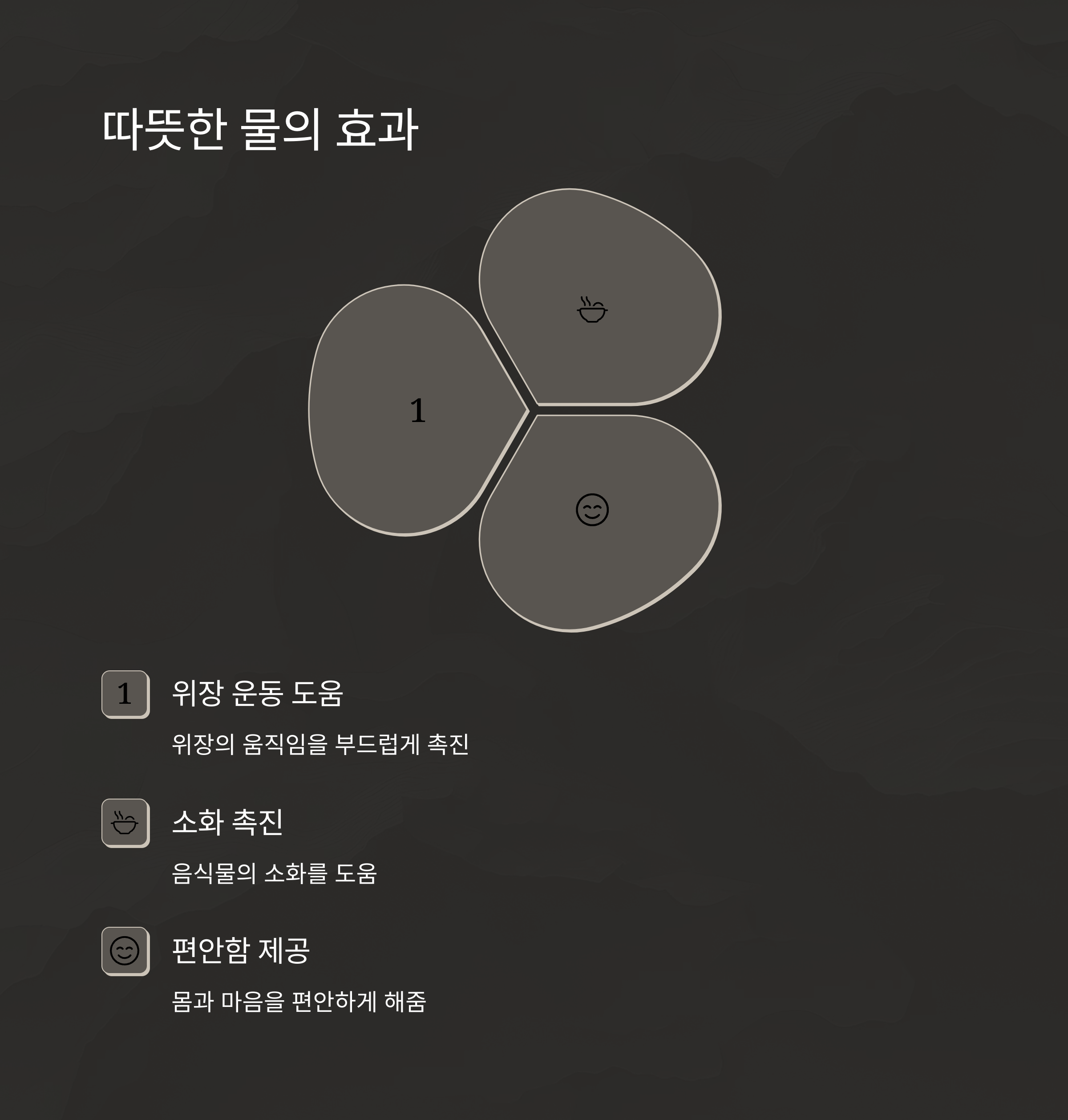 허브티를 마시듯 천천히 음미하며 마시면 급체 응급 처치로 더욱 효과적일 거예요. 따뜻한 물은 위장의 운동을 부드럽게 도와 음식물의 소화를 돕는 역할을 한답니다. 물을 마시면서 편안하게 휴식을 취하는 것도 잊지 마세요. 몸과 마음을 편안하게 해주는 것이 회복에 도움이 될 거예요. 차분하게 따뜻한 물을 마시며 몸의 반응을 살펴보세요.