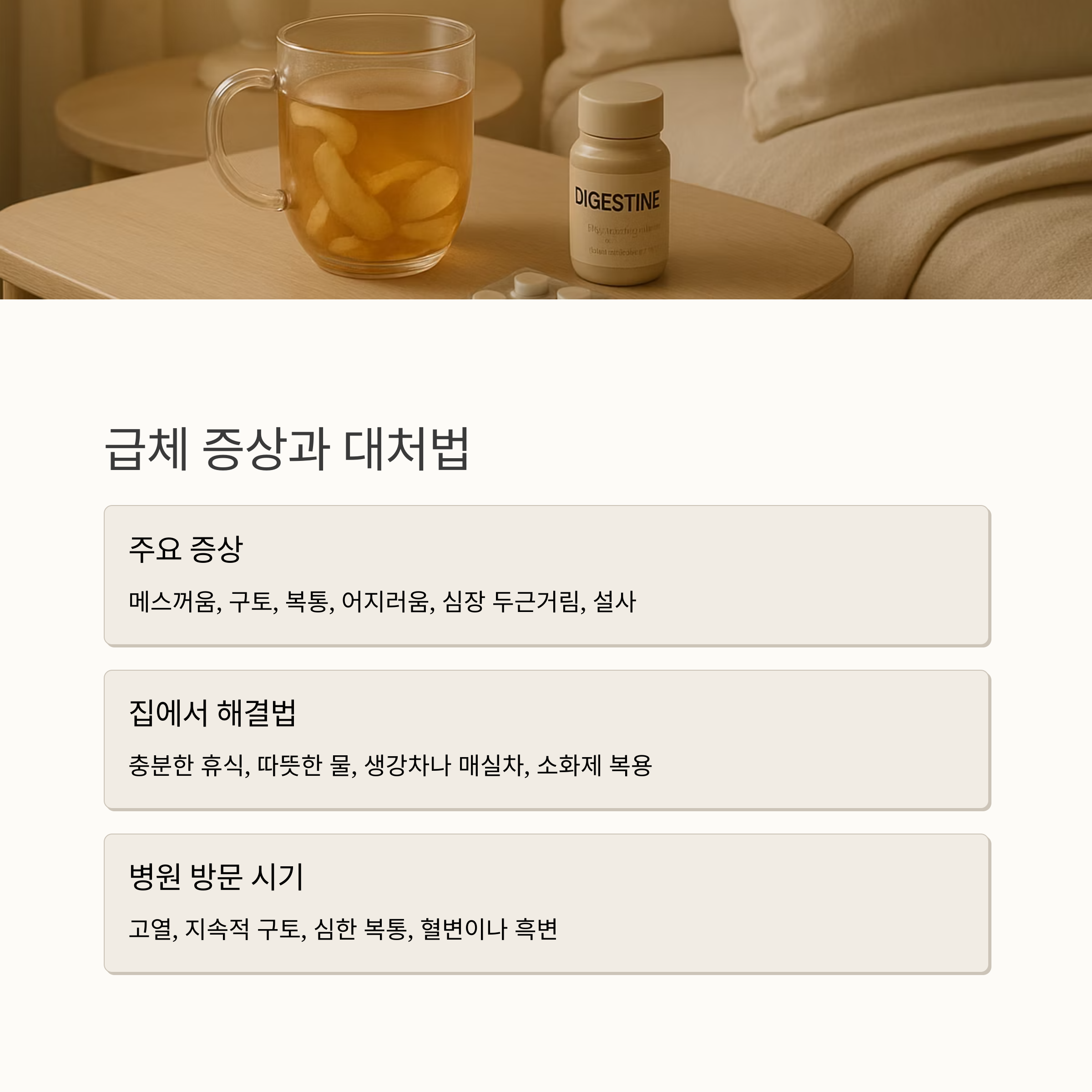 물론 집에서 간단하게 해결할 수 있는 급체도 있지만, 병원에 가야 할 경우도 있습니다. 고열이 나거나, 구토가 심하게 지속될 때, 복통이 심할 때, 혈변이나 흑변을 볼 때는 반드시 병원을 찾아야 해요. 이런 증상들은 단순한 급체가 아닌 다른 질병일 가능성이 있기 때문입니다.