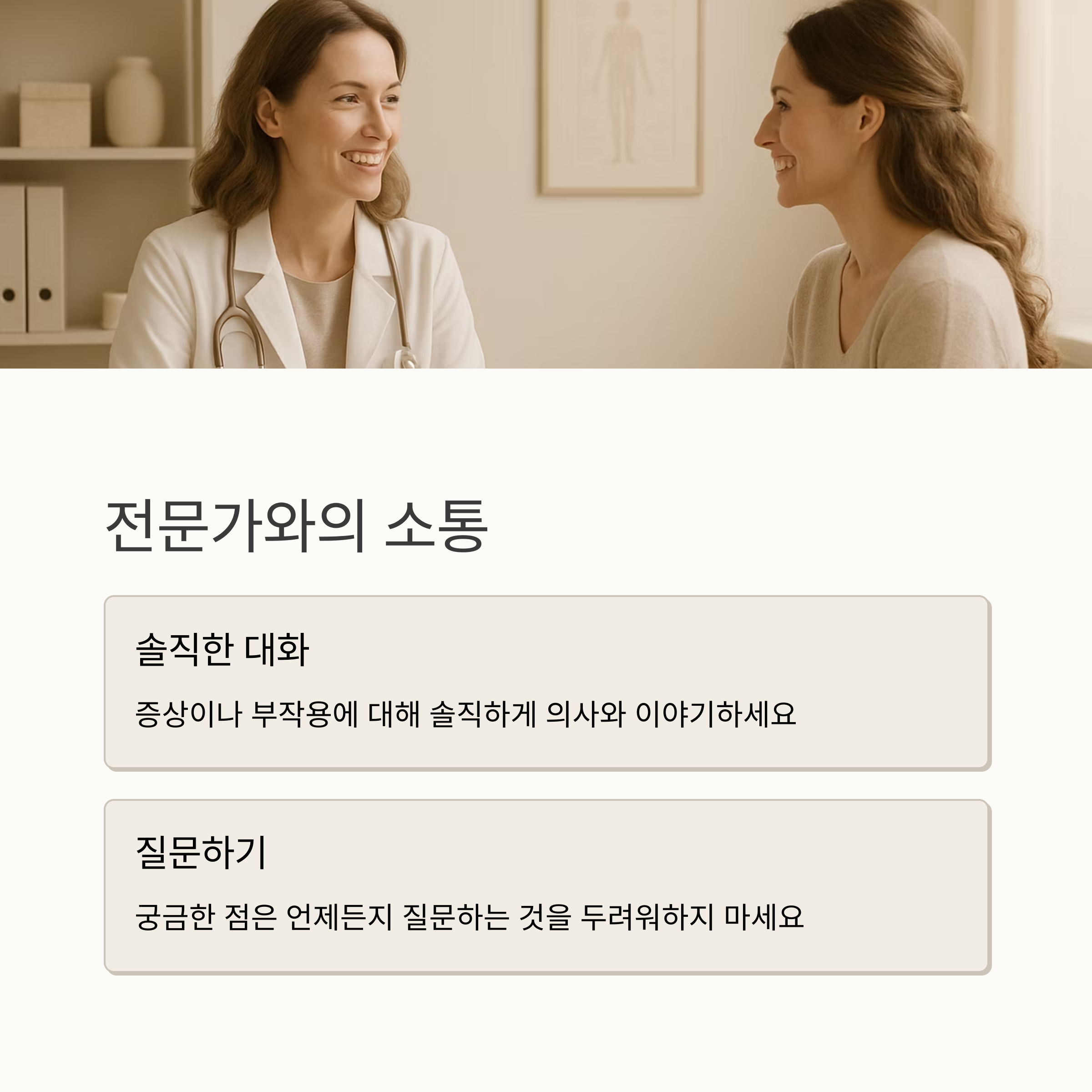 전문의의 진료를 통해 부족한 부분을 채우고 건강을 회복할 수 있어요. 하지만 어떤 치료법을 선택하더라도 꾸준히 관리하고 전문가와의 소통을 통해 최상의 효과를 얻는 것이 중요합니다. 치료 과정에서 나타나는 증상이나 부작용에 대해 솔직하게 의사와 이야기하고, 궁금한 점은 언제든지 질문하는 것을 두려워하지 마세요.
