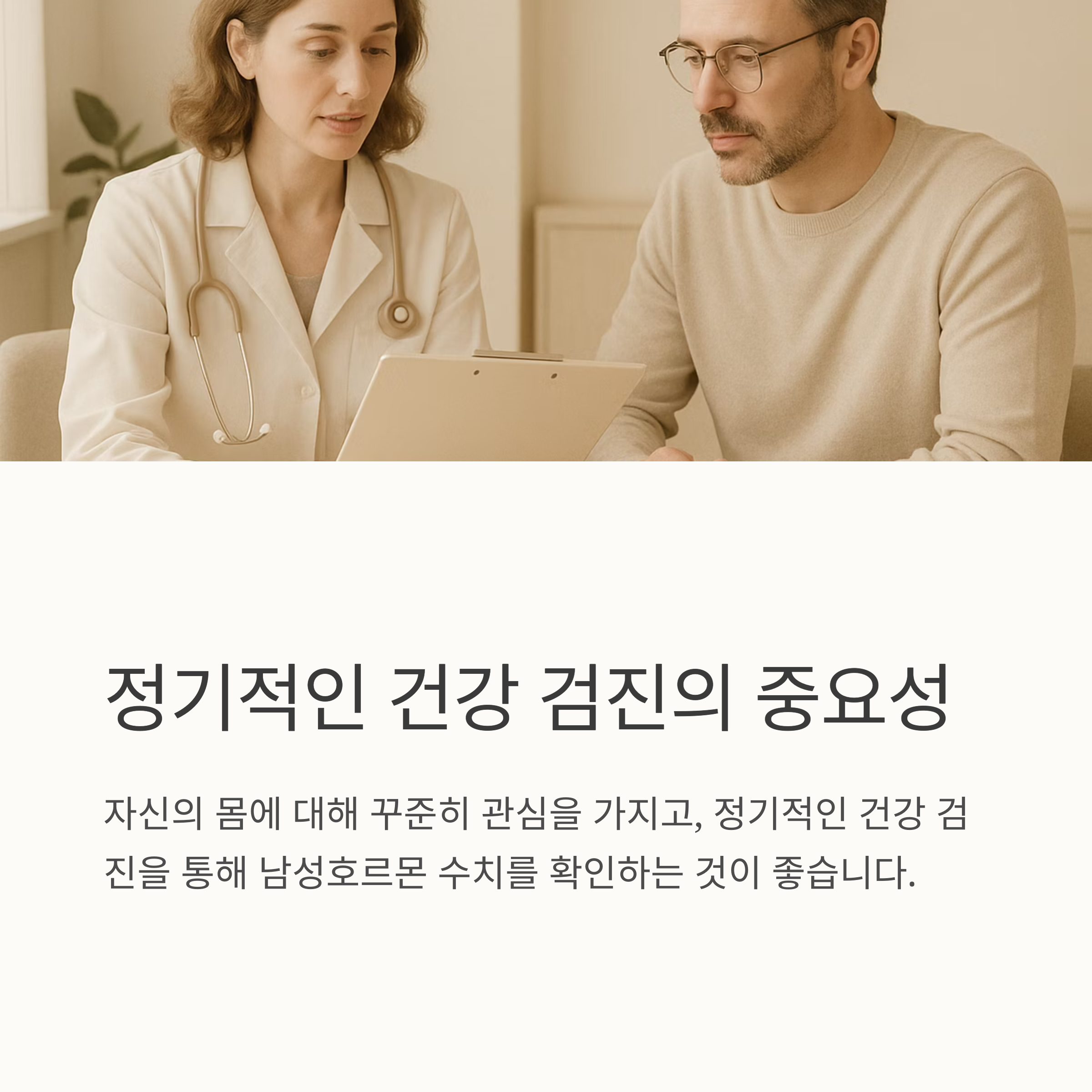 남성호르몬 부족은 단순히 불편함을 넘어 건강 전반에 영향을 미칠 수 있으므로, 증상을 가볍게 여기지 않는 것이 중요해요. 자신의 몸에 대해 꾸준히 관심을 가지고, 정기적인 건강 검진을 통해 남성호르몬 수치를 확인하는 것이 좋습니다.