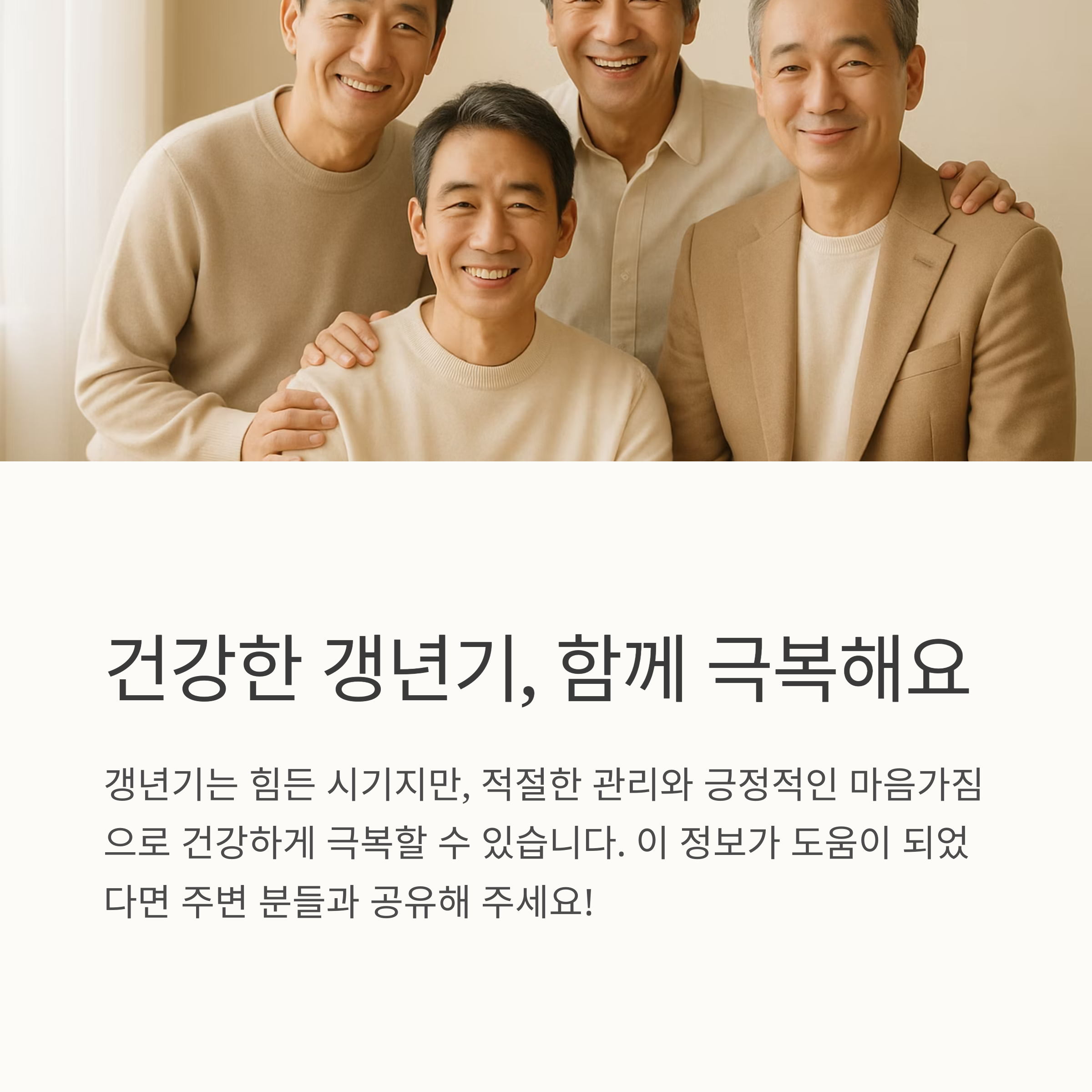 남자 갱년기 나이는 힘든 시기지만, 적절한 관리와 긍정적인 마음가짐으로 건강하게 극복할 수 있습니다. 자신의 몸과 마음에 귀 기울이고, 전문가의 도움을 받아 나에게 맞는 해결책을 찾아보세요. 건강한 삶을 위한 여정에서 포기하지 마시고, 꾸준히 노력하면 분명 좋은 결과를 얻을 수 있을 거예요. 이 글이 여러분의 건강한 갱년기 생활에 조금이나마 도움이 되길 바랍니다.