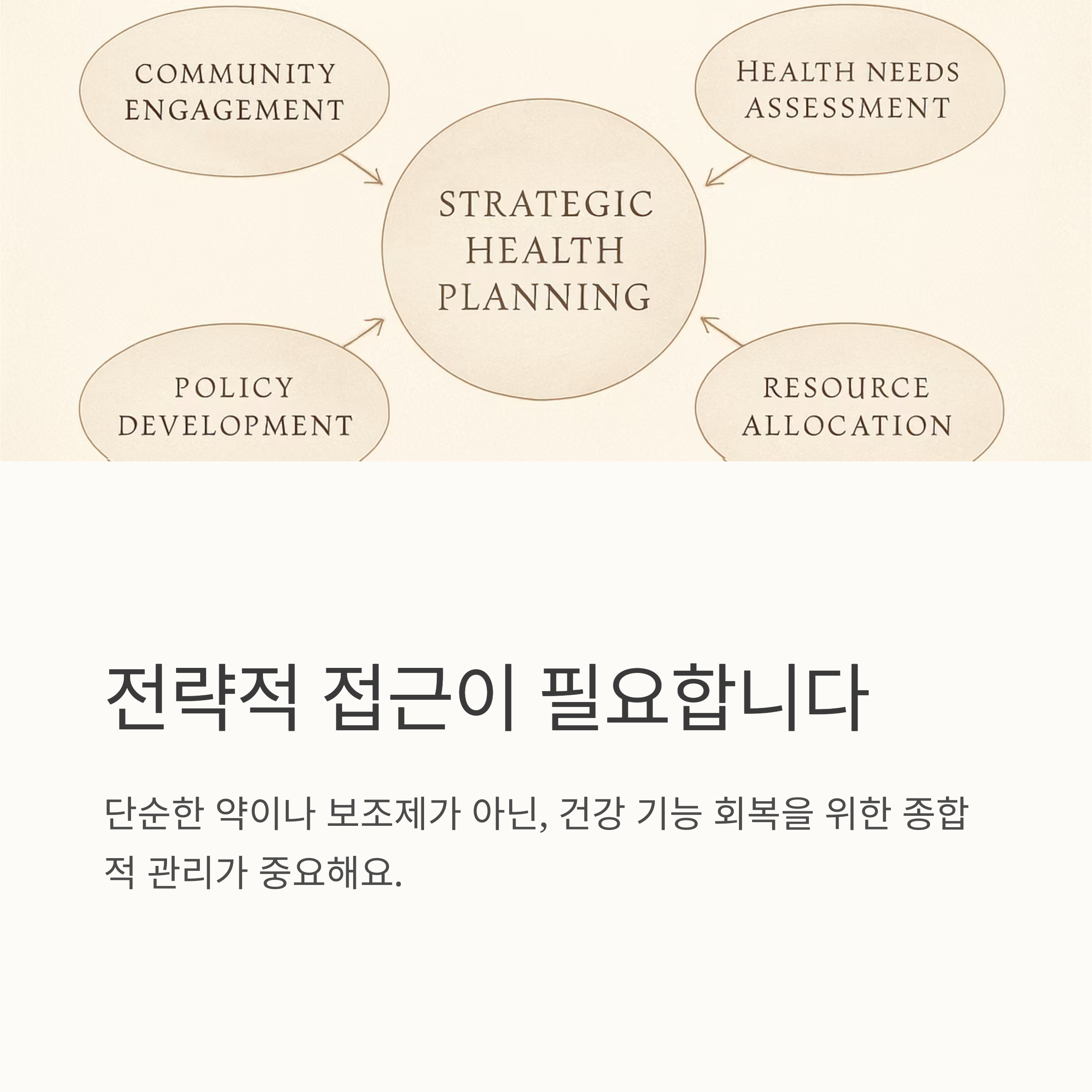 또한, 유전자 검사를 통해 자신에게 맞는 영양제를 선택하는 것도 도움이 될 수 있습니다. 이제는 단순한 약이나 보조제가 아닌, 건강 기능 회복을 위한 전략적인 접근이 필요합니다. 모든 사람에게 같은 방법이 통하는 것은 아니니, 나에게 꼭 맞는 루틴을 찾아 꾸준히 실천하는 것이 갱년기를 건강하게 극복하는 지름길입니다. 몸과 마음의 건강을 모두 고려하여 자신에게 맞는 방법을 찾고, 꾸준히 실천하는 것이 중요합니다. 인생의 전환점을 건강하게 넘어설 수 있도록 노력하세요.