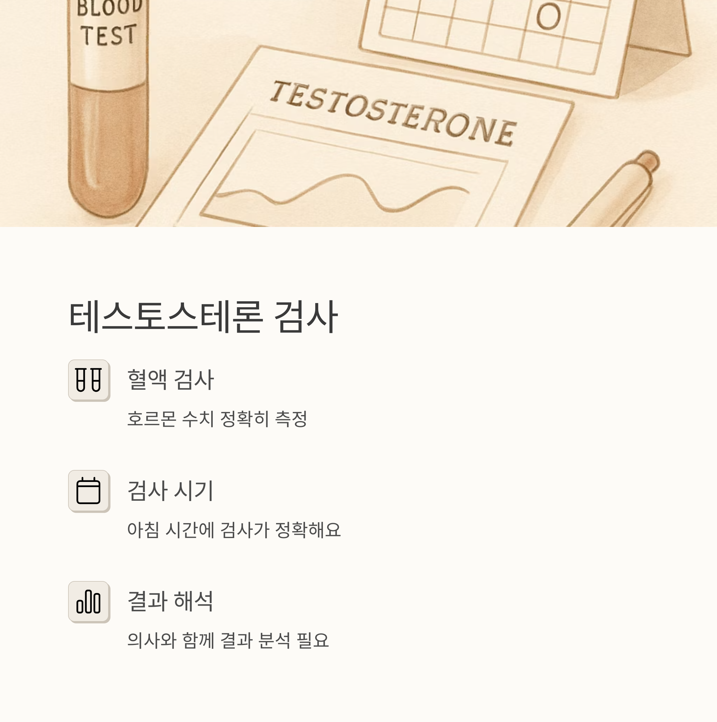 테스토스테론은 수면 중에 생성되니까 숙면을 취하는 것이 중요하죠. 스트레스 관리도 빼놓을 수 없어요. 명상이나 산책, 음악 감상 등으로 스트레스를 관리하면 도움이 되고요. 그리고 정기적인 건강 검진은 필수예요. 남성 호르몬 수치와 대사 증후군 여부를 확인하는 정기검진을 통해 건강 상태를 꾸준히 체크해야 해요.