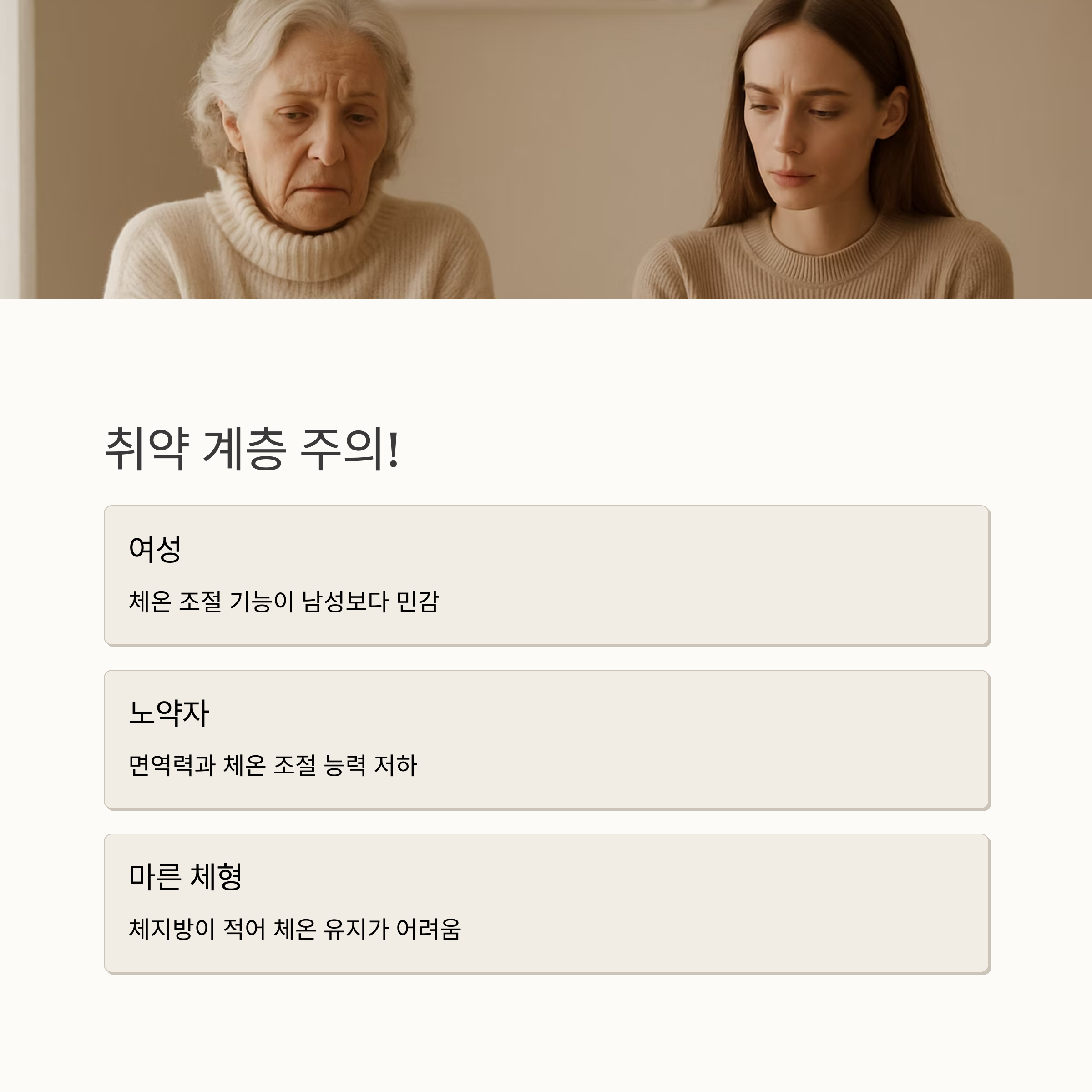 또한 건조한 실내 환경도 문제가 될 수 있어요. 에어컨은 공기 중 수분을 빼앗아가기 때문에 호흡기 점막이 건조해지고, 그로 인해 콧물, 인후통 등 감기 증상과 유사한 증상이 나타날 수 있답니다. 뿐만 아니라 에어컨 청소를 제대로 하지 않으면 먼지, 곰팡이, 세균 등이 번식하면서 호흡기 질환을 유발할 수도 있고요. 면역력이 약한 사람, 특히 여성, 노약자, 마른 체형의 사람들은 냉방병에 더 취약하다는 사실도 기억해두세요. 내 몸의 상태를 잘 파악하고, 위험요소에 노출되지 않도록 주의하는 것이 중요하답니다.