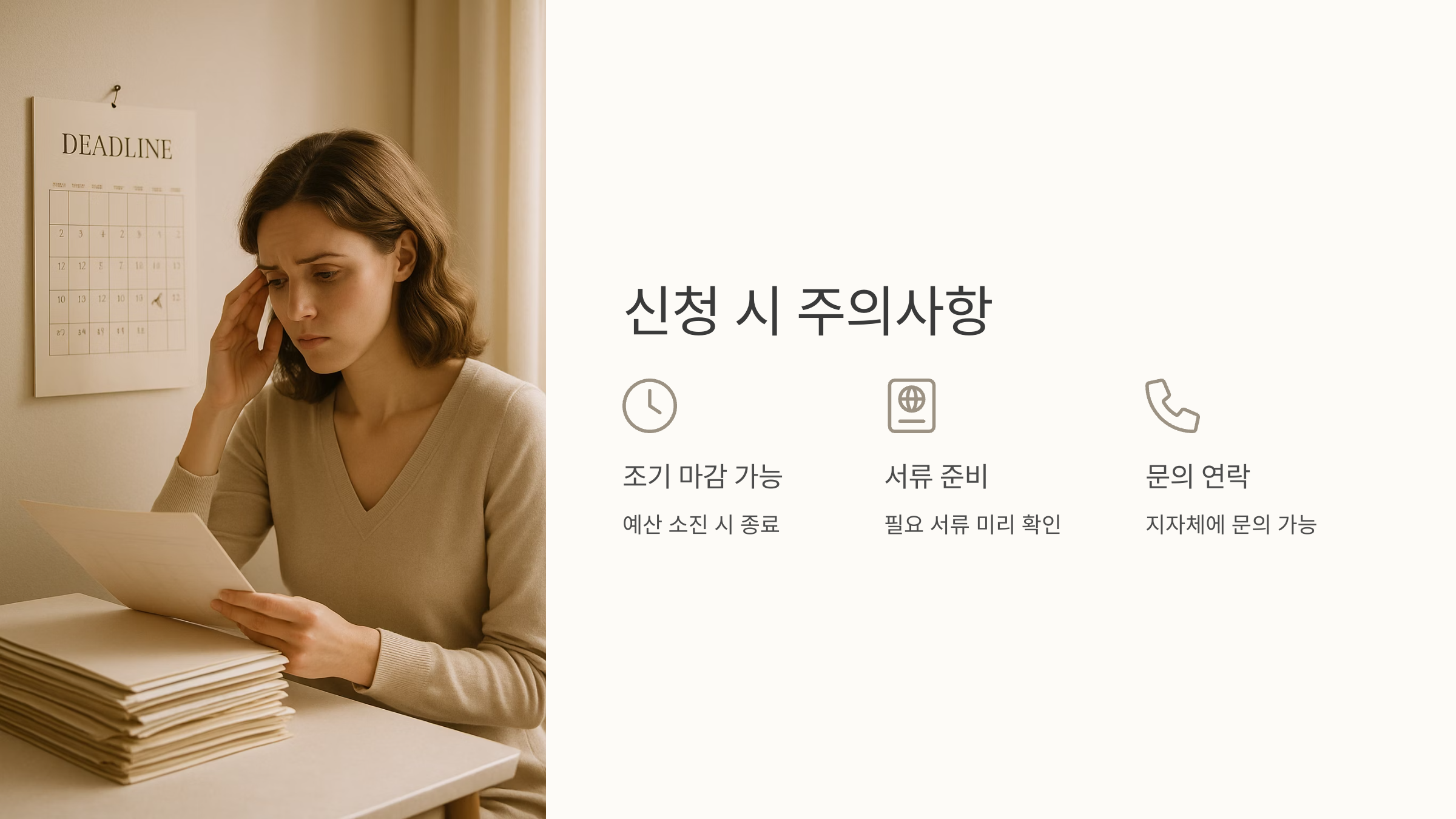 지원 대상이라면 지금 바로 신청하셔서 혜택을 누리세요! 미리 준비하고 꼼꼼하게 확인한다면 어렵지 않게 진행할 수 있습니다. 망설이지 말고 지금 바로 신청하세요!
