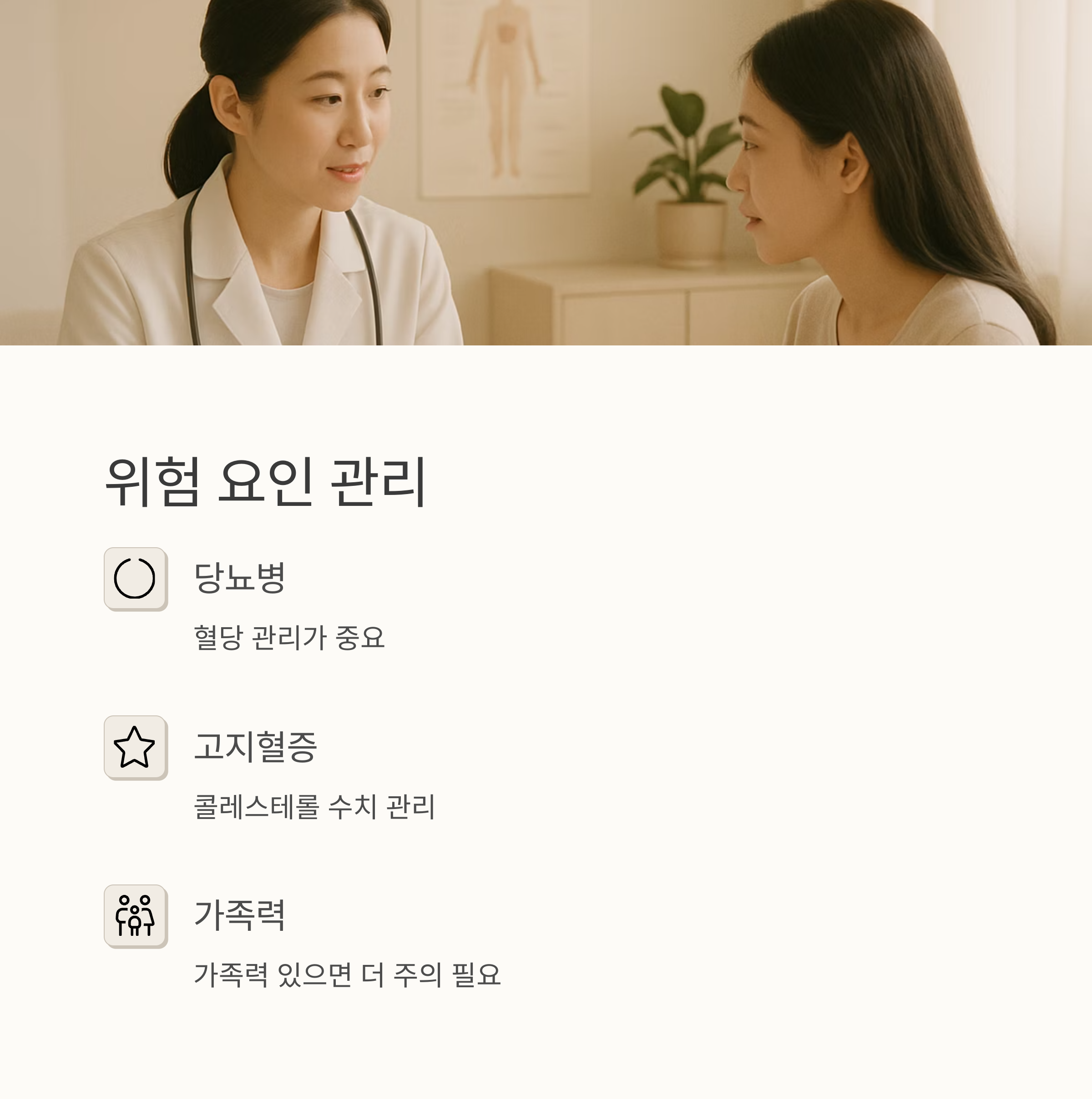 정기적인 건강검진을 통해 고혈압, 당뇨병, 고지혈증 등 뇌졸중의 위험 요인을 조기에 발견하고 관리하는 것이 중요해요. 특히 고혈압, 당뇨병, 고지혈증이 있는 분들은 더욱 주의해야 해요.
