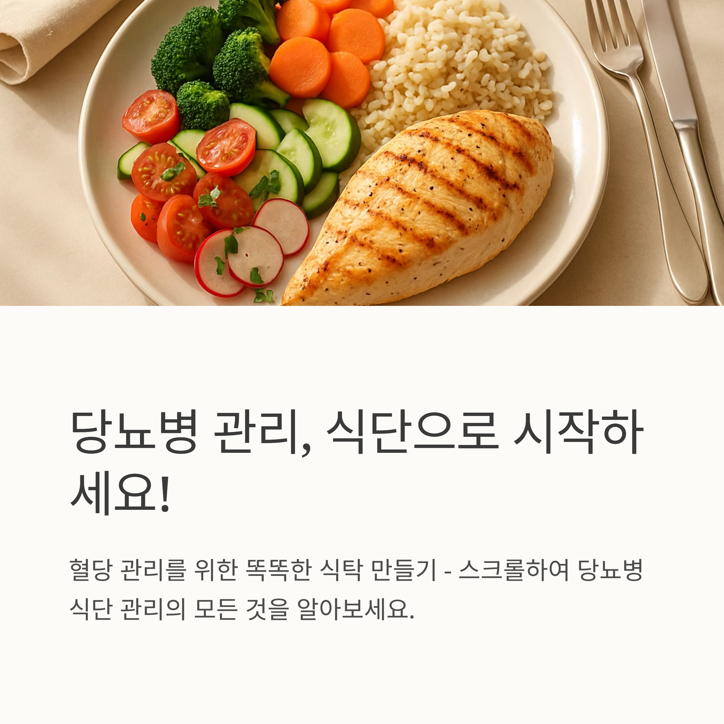 안녕하세요! 오늘은 우리 몸 건강과 깊은 연관이 있는 당뇨병 관리, 그중에서도 식단 관리에 대해서 편안하게 이야기 나눠보려고 합니다. 당뇨병 진단 받으신 분들, 혹은 당뇨병 예방을 위해 식단 관리에 관심 있으신 분들 모두 환영입니다! 함께 당뇨병 관리를 위한 당뇨병 식이요법으로 똑똑한 식탁을 만들어 볼까요?