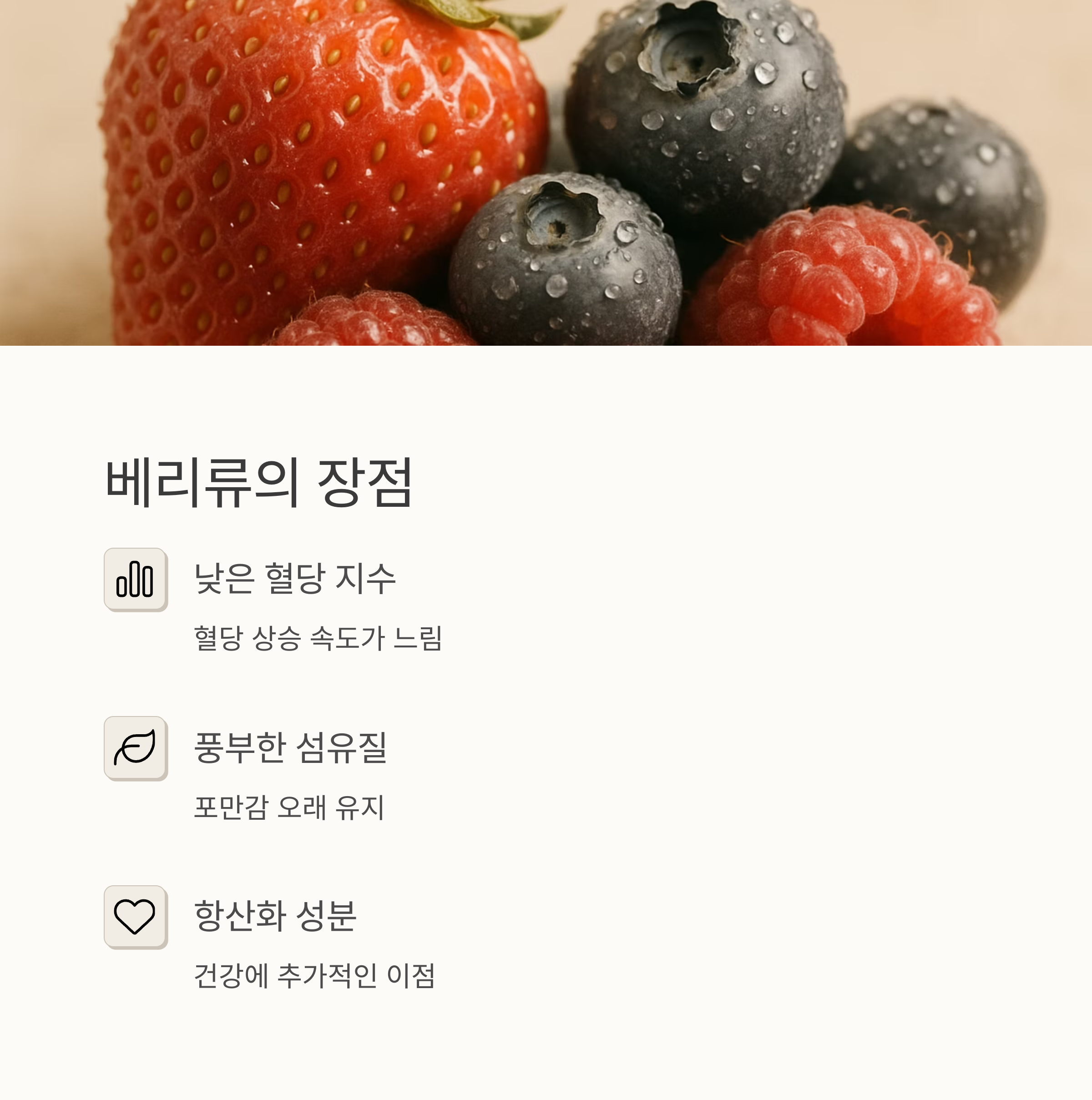 당뇨병이 있으신 분들도 과일을 즐기실 수 있어요! 하지만 모든 과일이 다 같은 건 아니죠. 혈당 지수(GI)가 낮은 과일을 선택하는 것이 중요해요. 혈당 지수가 낮다는 것은 섭취 후 혈당이 천천히 상승한다는 뜻이에요. 예를 들어, 딸기, 블루베리, 체리 같은 베리류는 혈당 지수가 낮고, 섬유질이 풍부해서 포만감을 오래 유지시켜주고, 혈당 조절에도 도움을 줘요.
