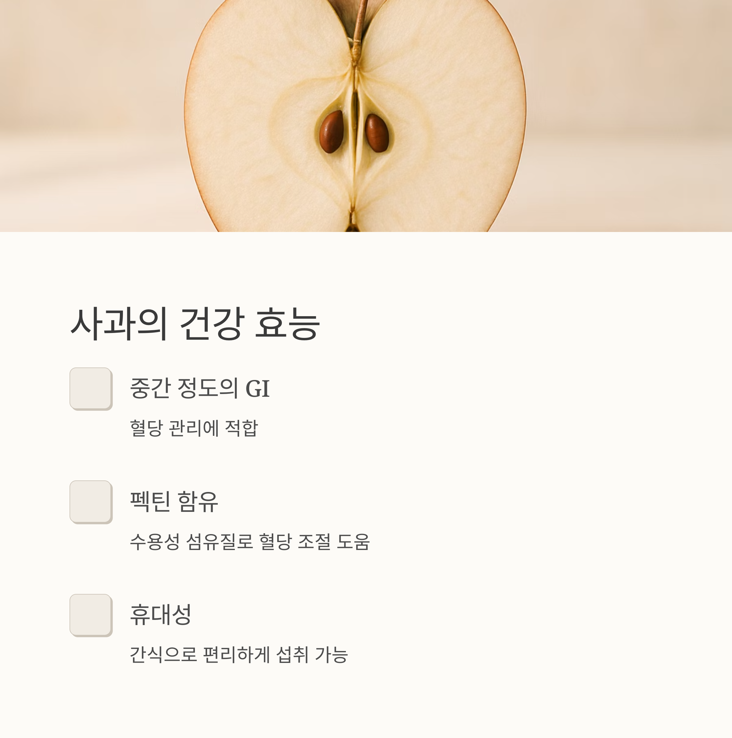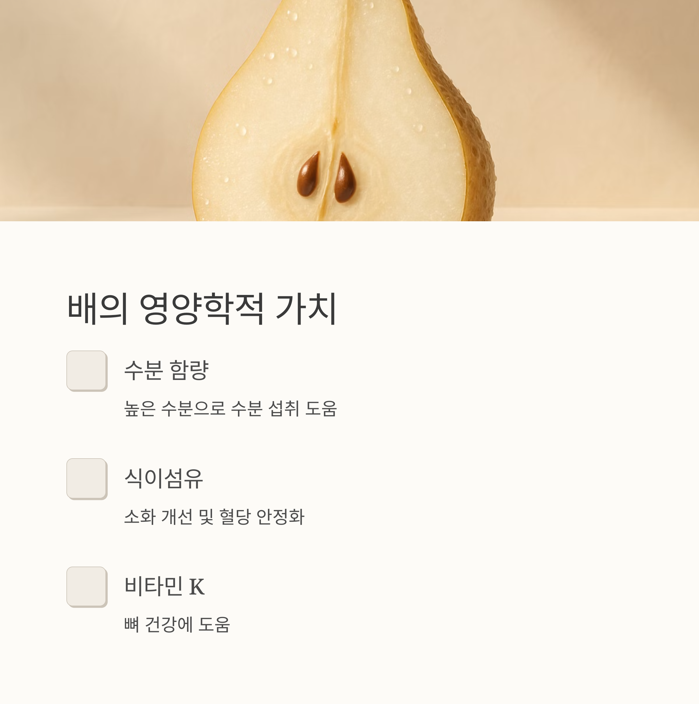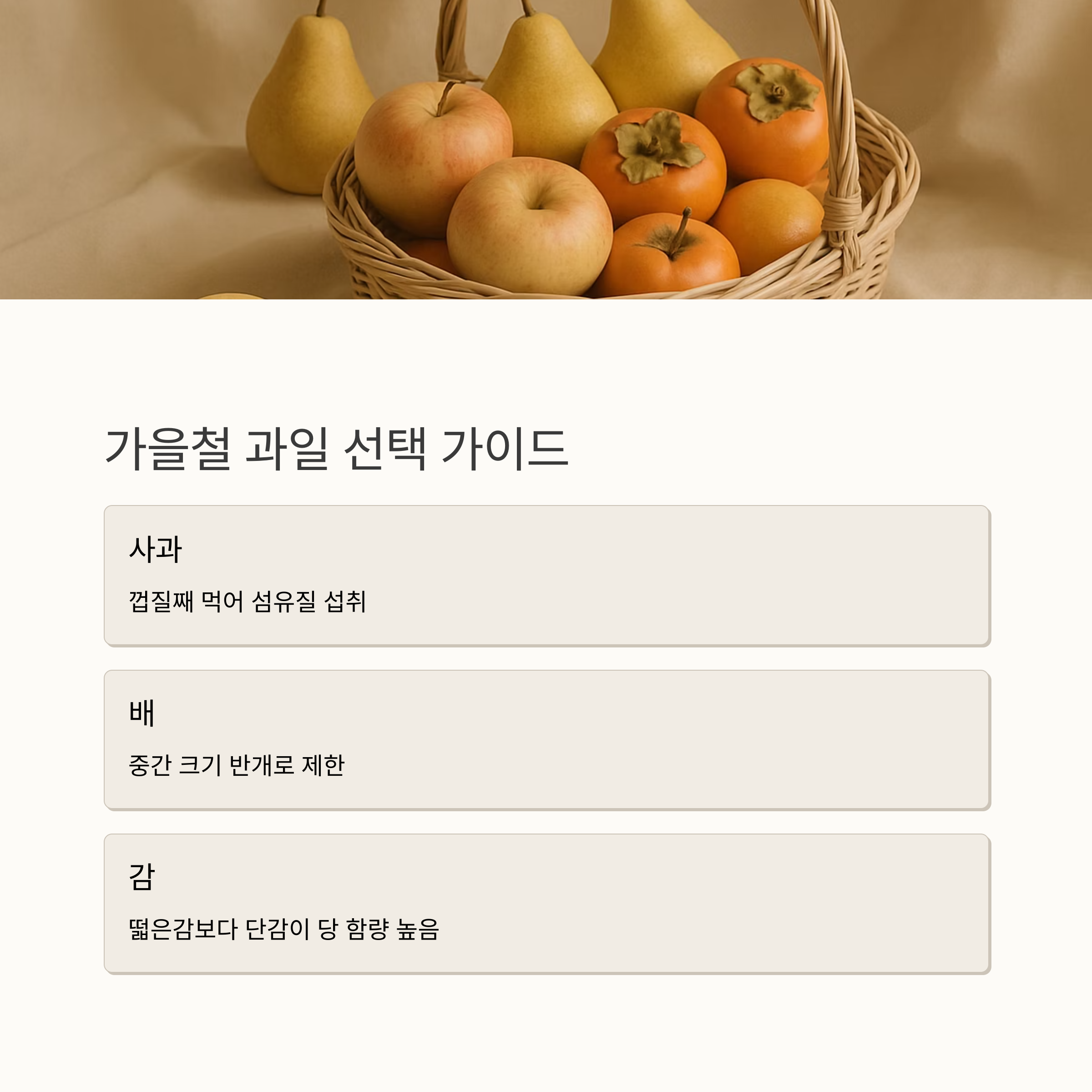 사과나 배도 괜찮은 선택이에요. 단, 과일을 먹을 때는 한 번에 많은 양을 먹지 말고, 적당량을 섭취하는 것이 중요해요. 그리고 과일을 통째로 먹는 것이 과즙을 마시는 것보다 섬유질 섭취에 더 도움이 된다는 사실도 기억해두세요!