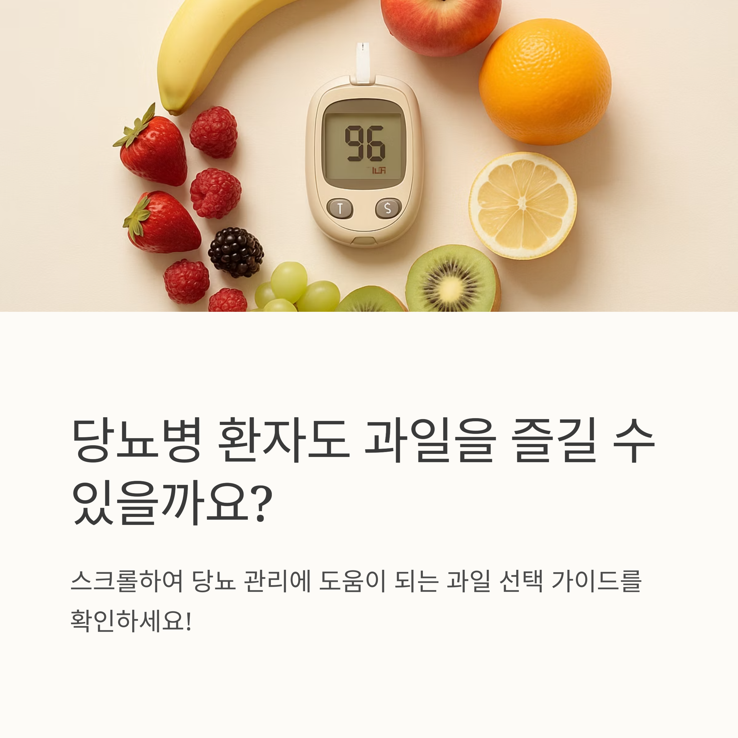 안녕하세요! 달콤한 과일이 당뇨 관리에 도움이 될까요, 아니면 해가 될까요? 헷갈리시는 분들을 위해 과일 선택 가이드를 준비했습니다. 함께 과일의 당 함량과 영양 성분을 알아보고, 건강한 당뇨 관리를 위한 현명한 선택을 해보아요!