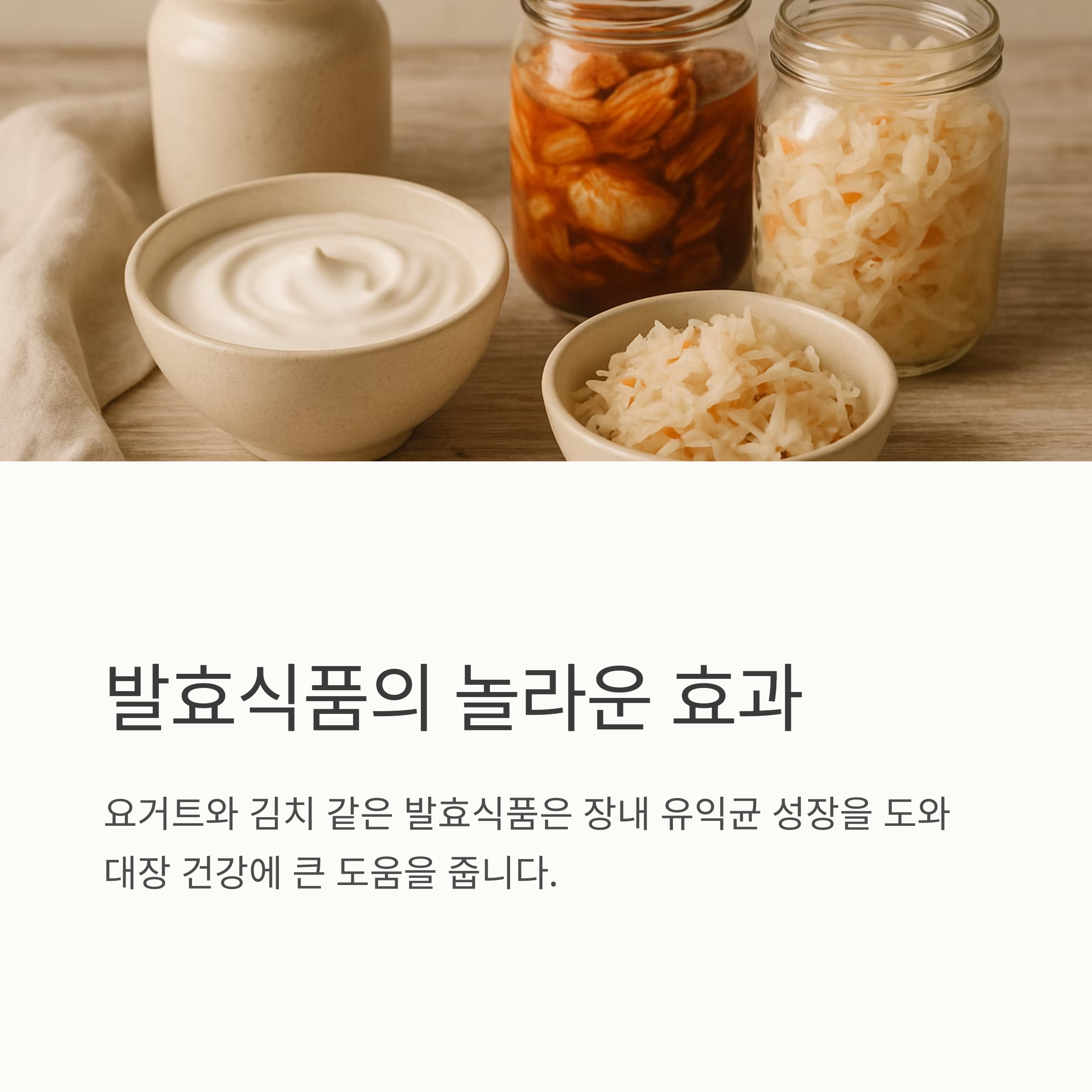 또, 요거트나 김치 같은 발효유제품도 장내 유익균의 성장을 도와주는 든든한 대장에 좋은 음식이에요. 매일 식탁에 섬유질 풍부한 음식들을 올려보세요. 우리 몸에 활력을 불어넣는 힘이 될 거예요. 단, 과일과 채소는 깨끗하게 씻어 섭취하는 것 잊지 마세요!