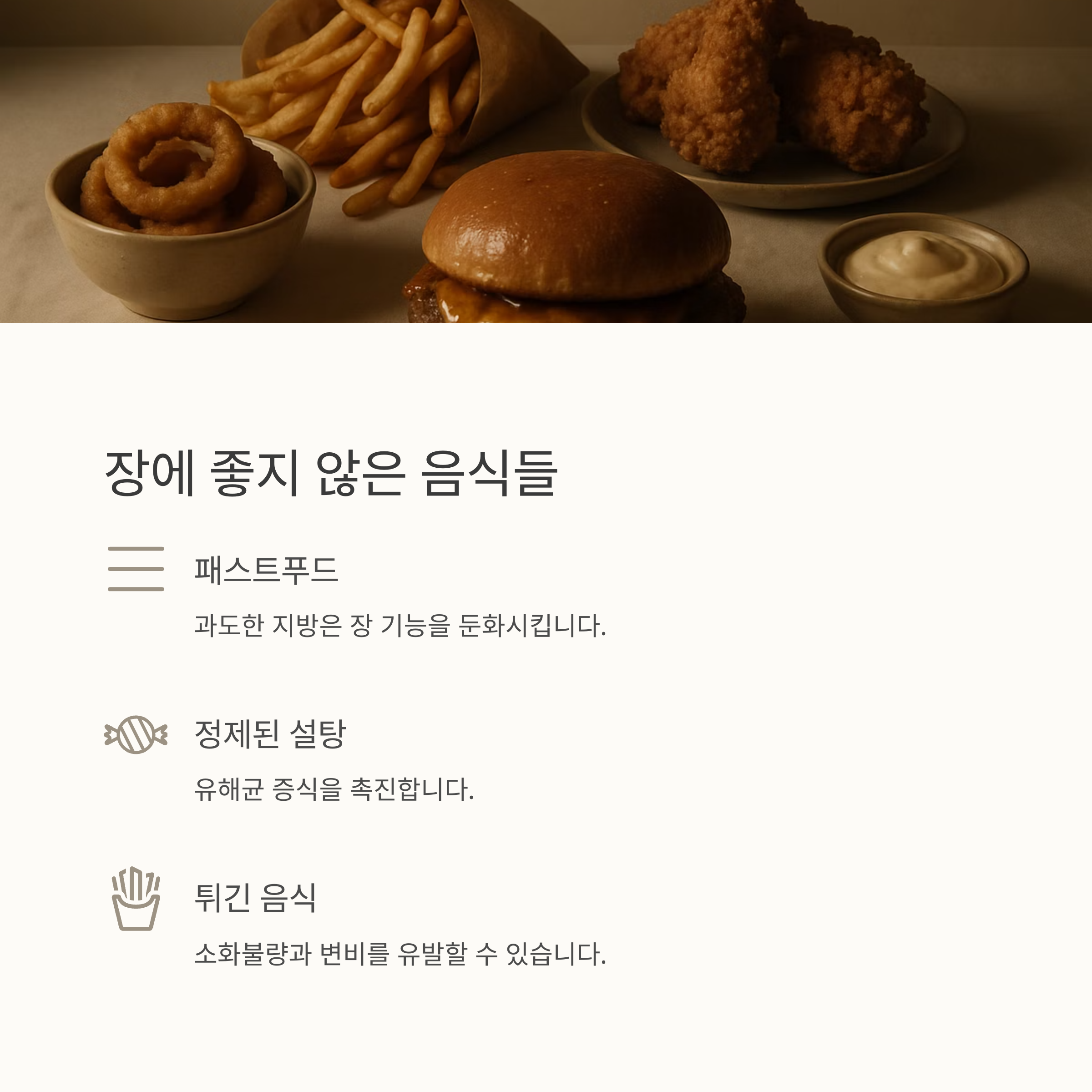 4. 장에 좋지 않은 음식: 피해야 할 음식들은 무엇일까요?