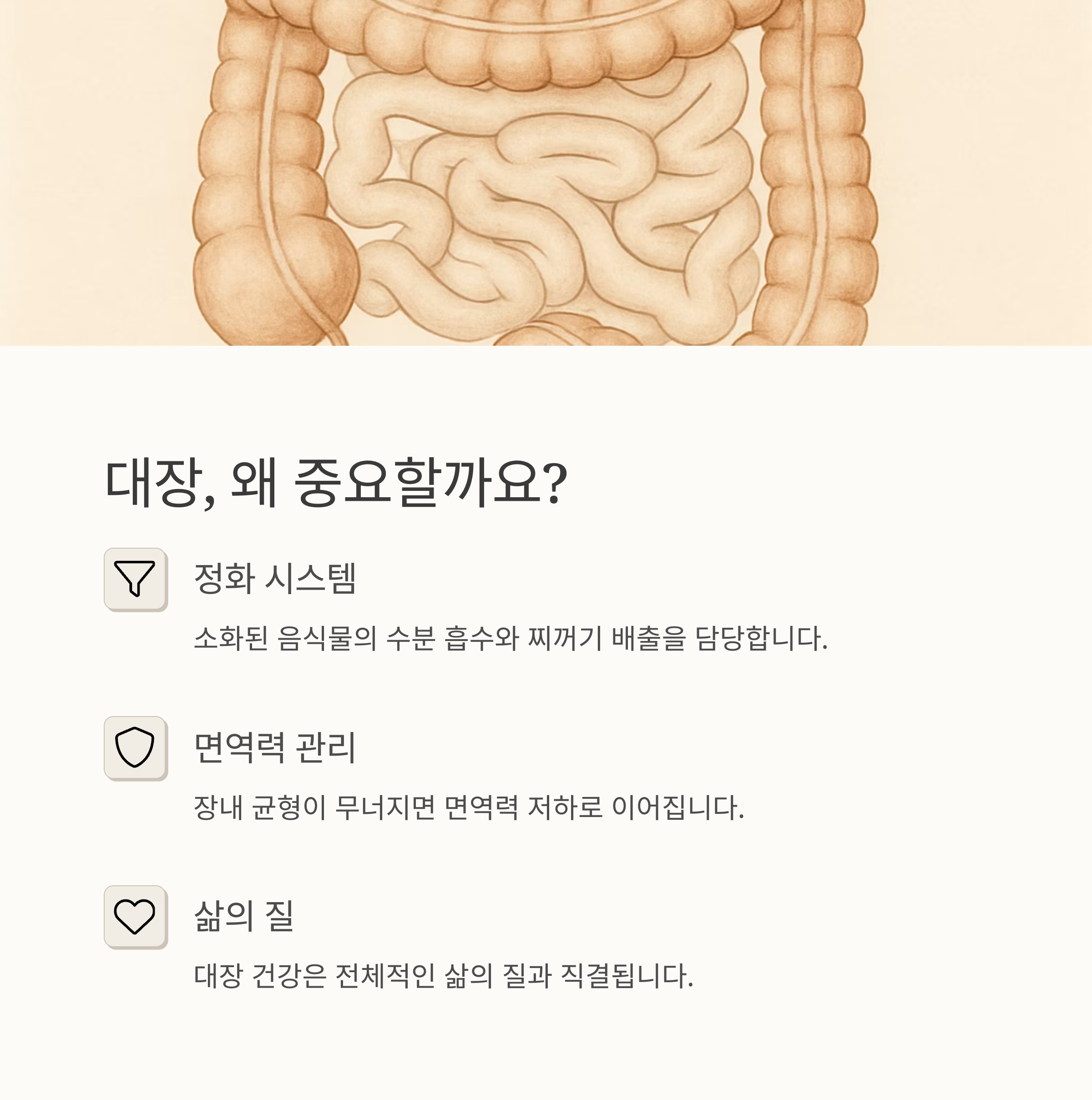 우리 몸에서 대장이 얼마나 중요한 역할을 하는지 아시나요? 소화된 음식물의 수분을 흡수하고, 찌꺼기를 배출하는 역할을 하는 대장은 우리 몸의 정화 시스템과 같아요. 대장이 건강하지 않으면 변비나 설사 같은 불편함은 물론이고, 면역력 저하까지 이어질 수 있답니다.