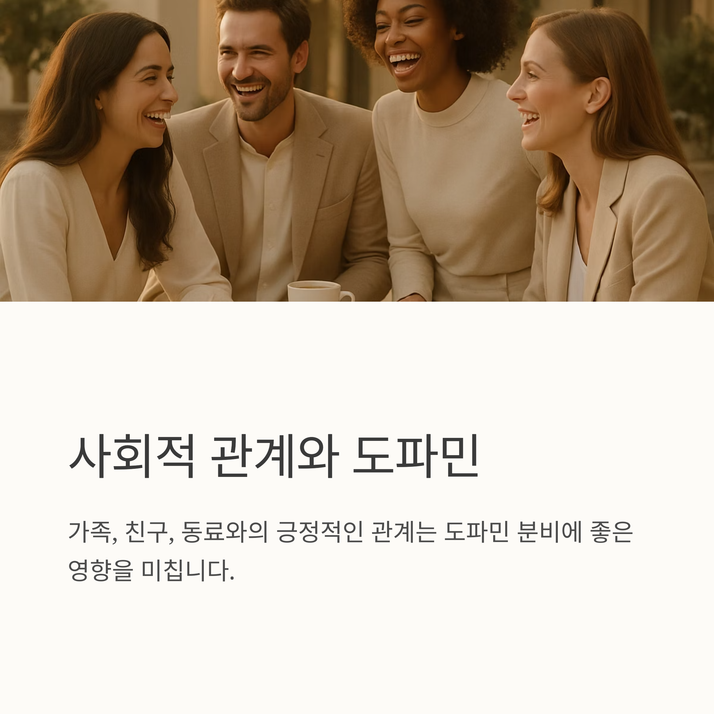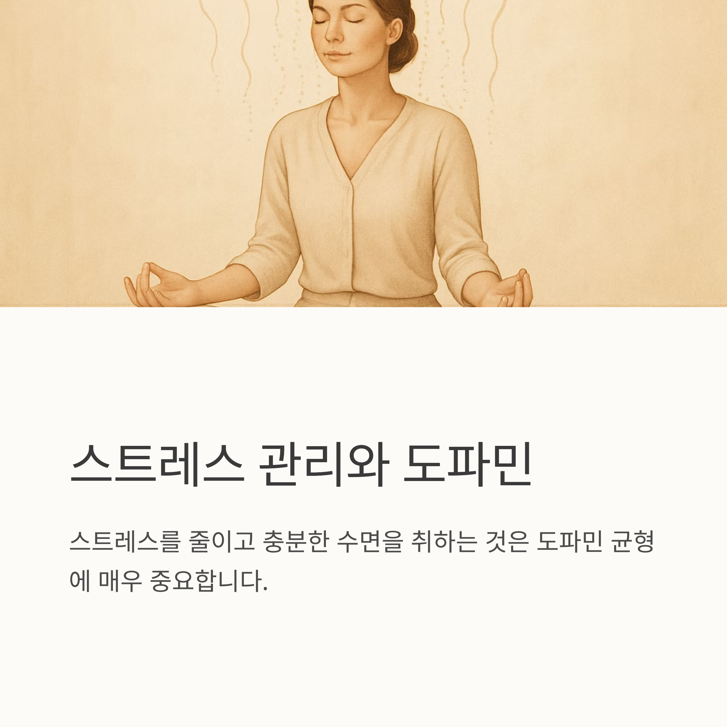 스트레스를 줄이고 충분한 수면을 취하는 것도 중요하죠. 명상이나 요가, 좋아하는 취미 활동을 하는 것도 도파민 분비를 촉진하는데 효과적이에요. 사람들과의 교류도 도움이 될 수 있는데요. 가족, 친구, 동료와의 긍정적인 관계는 우리의 정서적 안정과 도파민 분비에 긍정적인 영향을 미칩니다.