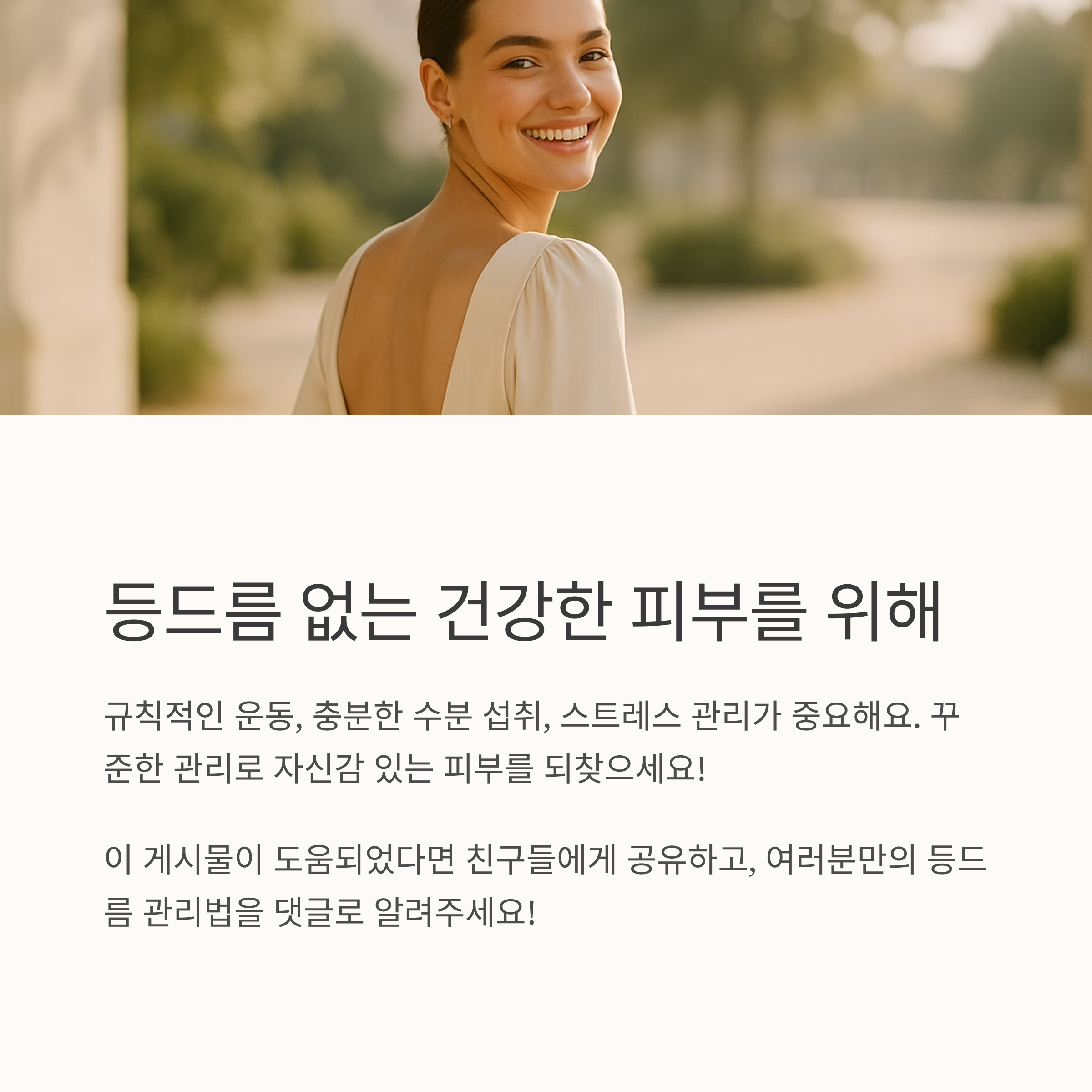 등드름 없애는 법에 대한 이야기, 어떠셨나요? 꼼꼼한 클렌징과 천연 성분을 활용한 홈케어, 생활 습관 개선 등 다양한 등드름 없애는 법을 소개해 드렸는데요, 이 모든 방법들을 꾸준히 실천하면 결과적으로 매끄럽고 건강한 피부를 가질 수 있을 거라고 확신합니다. 포기하지 말고 꾸준히 관리해서 등드름 없는 자신감 있는 여름을 맞이하시길 바랍니다! 그리고 나에게 맞는 방법을 찾는 것도 잊지 마세요.
