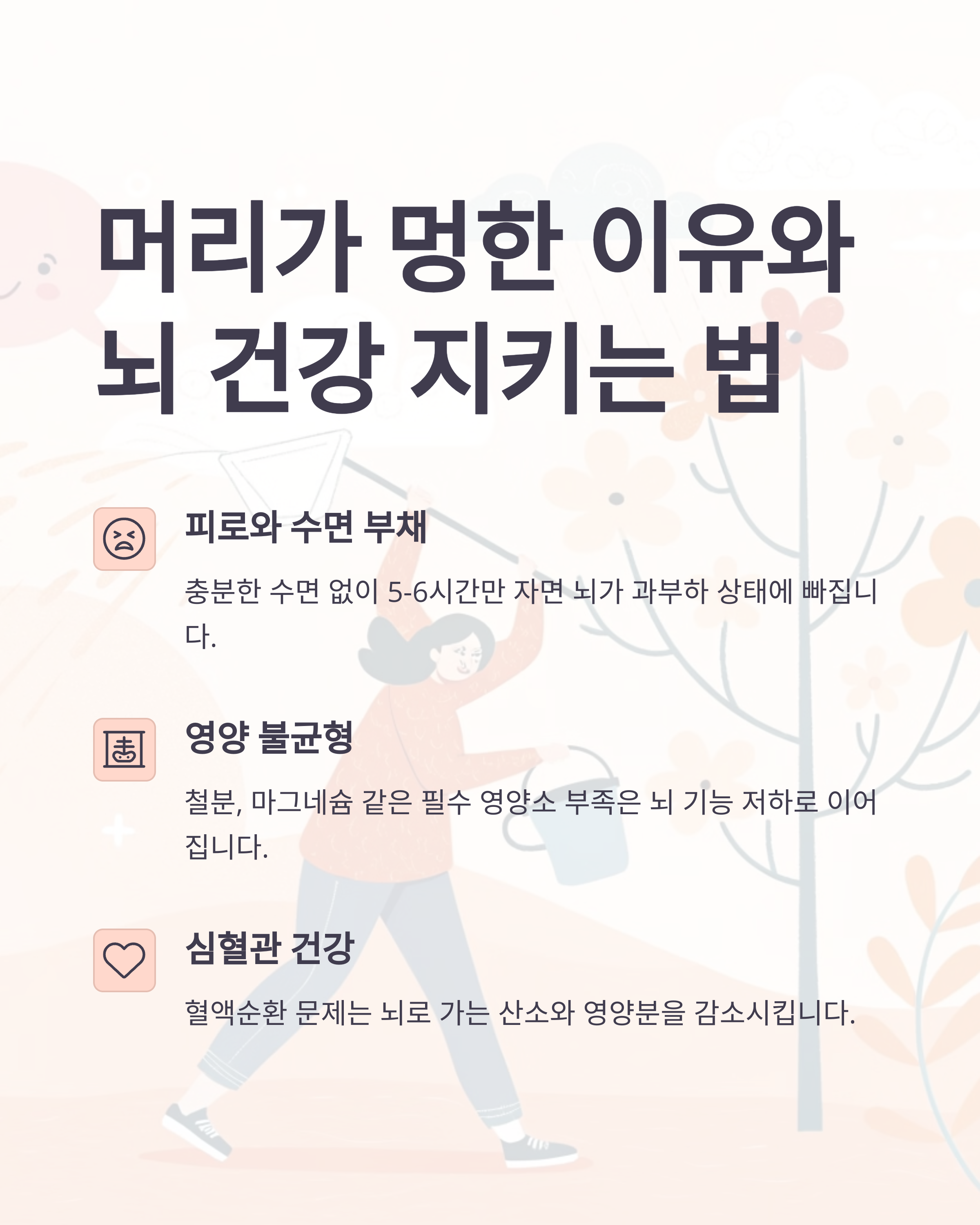 안녕하세요! 혹시 요즘 머리가 멍하고 집중이 잘 안 되시나요? 마치 안개가 낀 것처럼 답답하고, 기억력도 예전 같지 않다고 느끼신다면, 오늘 포스팅이 도움이 될 거예요. 정신을 맑게 하고 뇌 건강을 지키는 방법, 지금부터 함께 알아봐요!