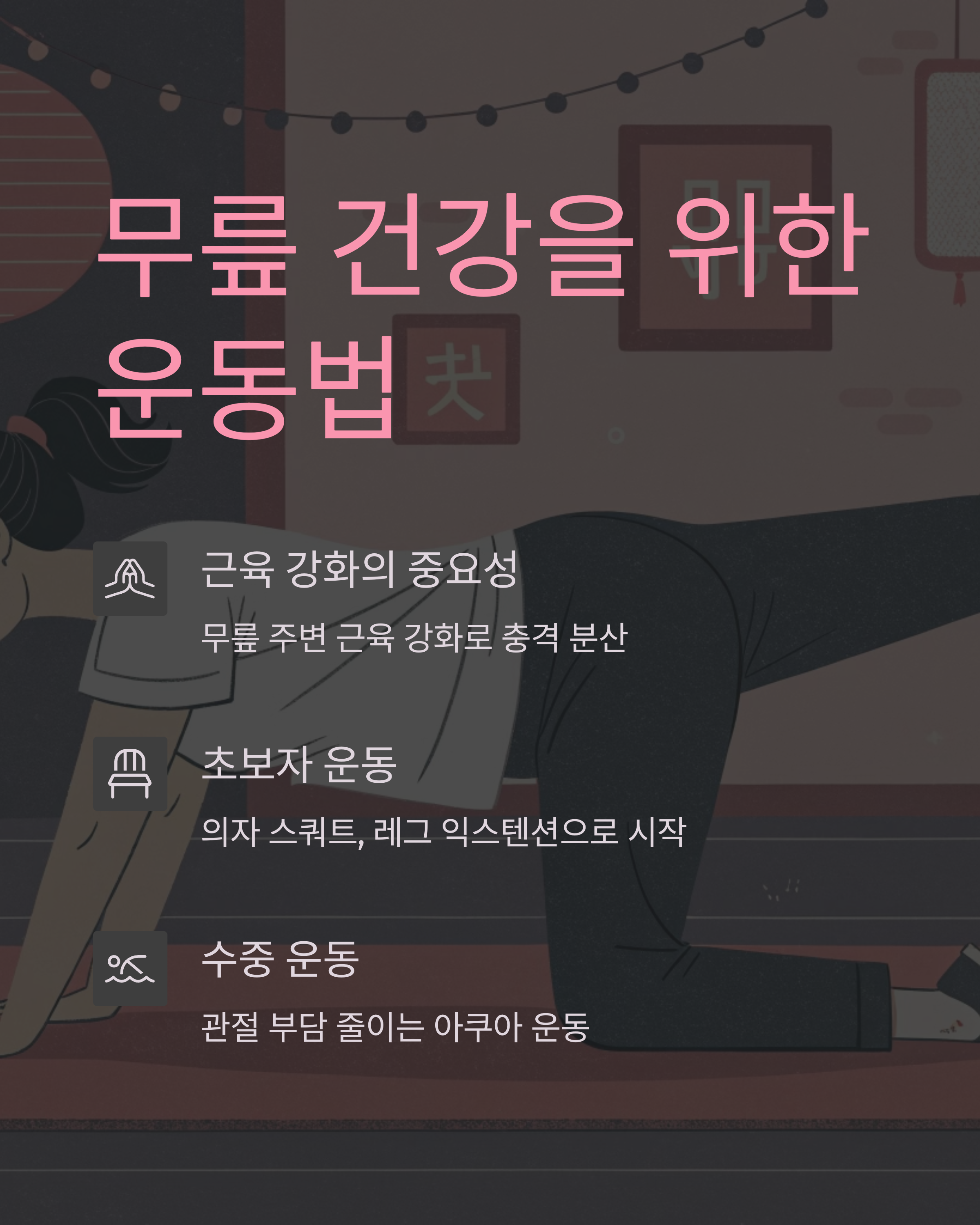 가장 중요한 건, ‘통증 없는 범위 내’에서 운동을 시작하는 거예요. 처음부터 무리하지 말고, 가볍게 시작해서 꾸준히 반복하는 것이 중요해요. 저도 처음에는 정말 간단한 스트레칭부터 시작했는데, 꾸준히 하니까 확실히 무릎이 튼튼해지는 게 느껴지더라고요.