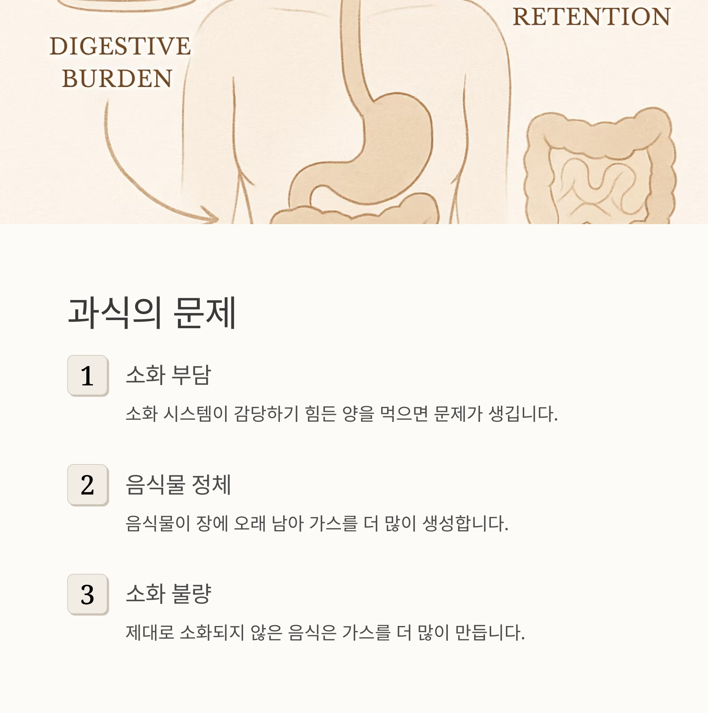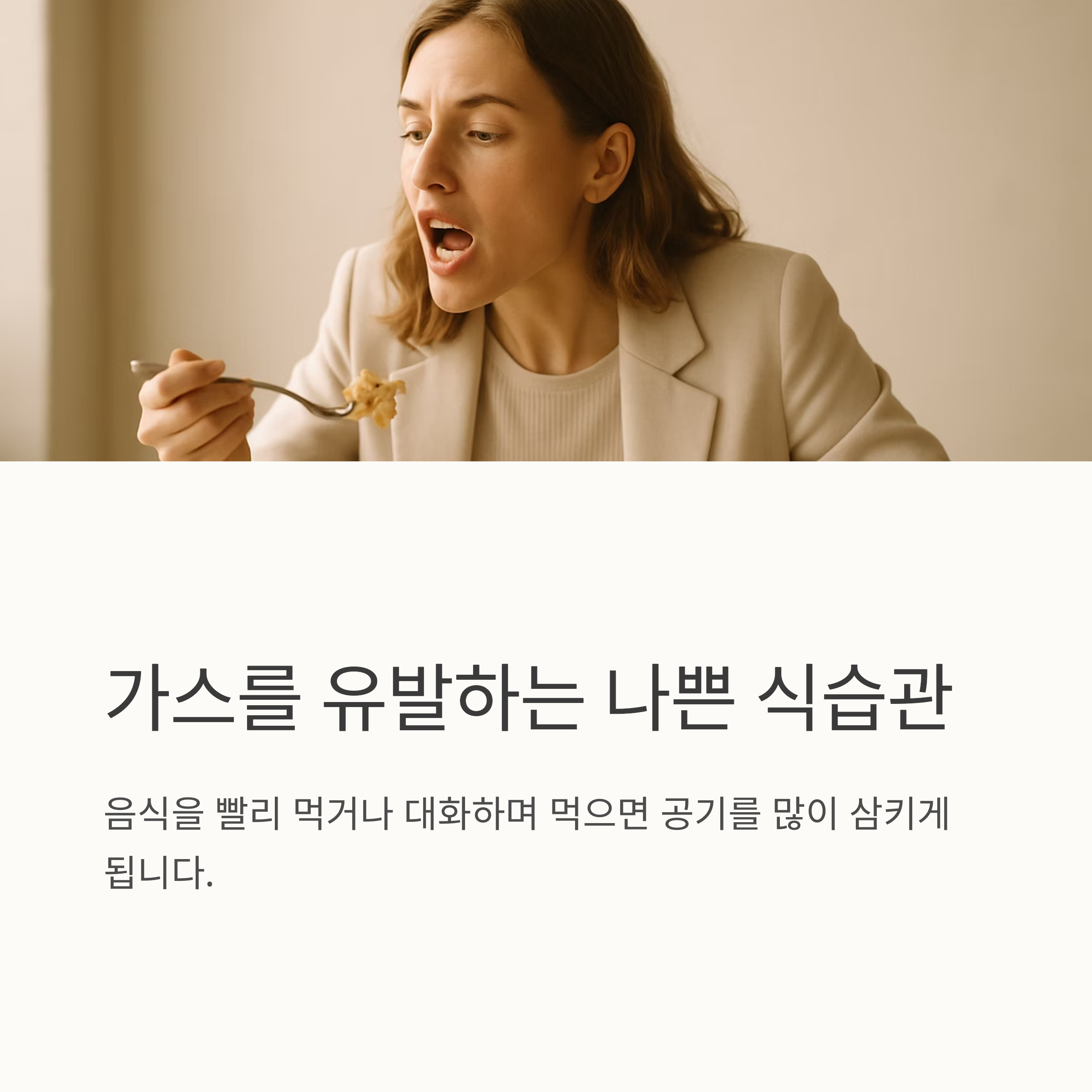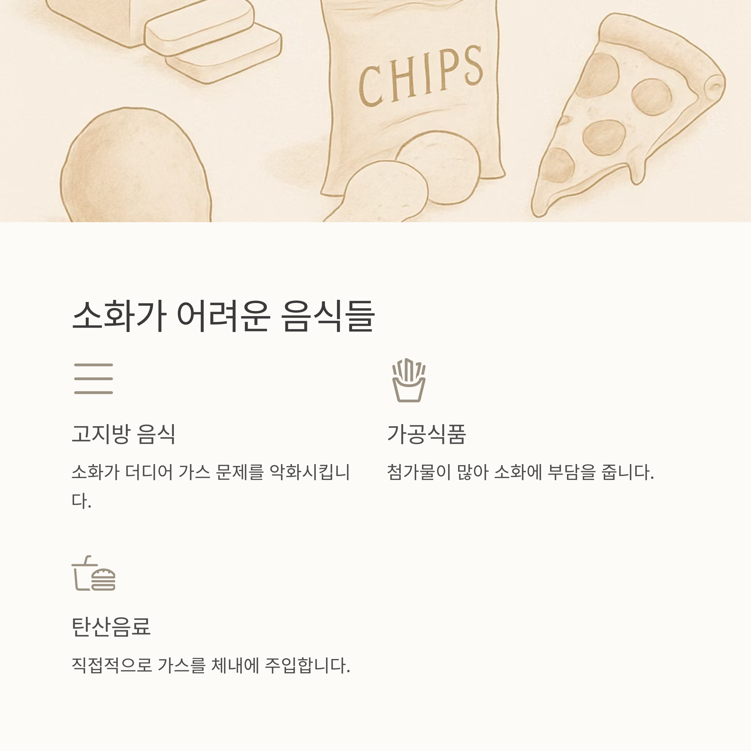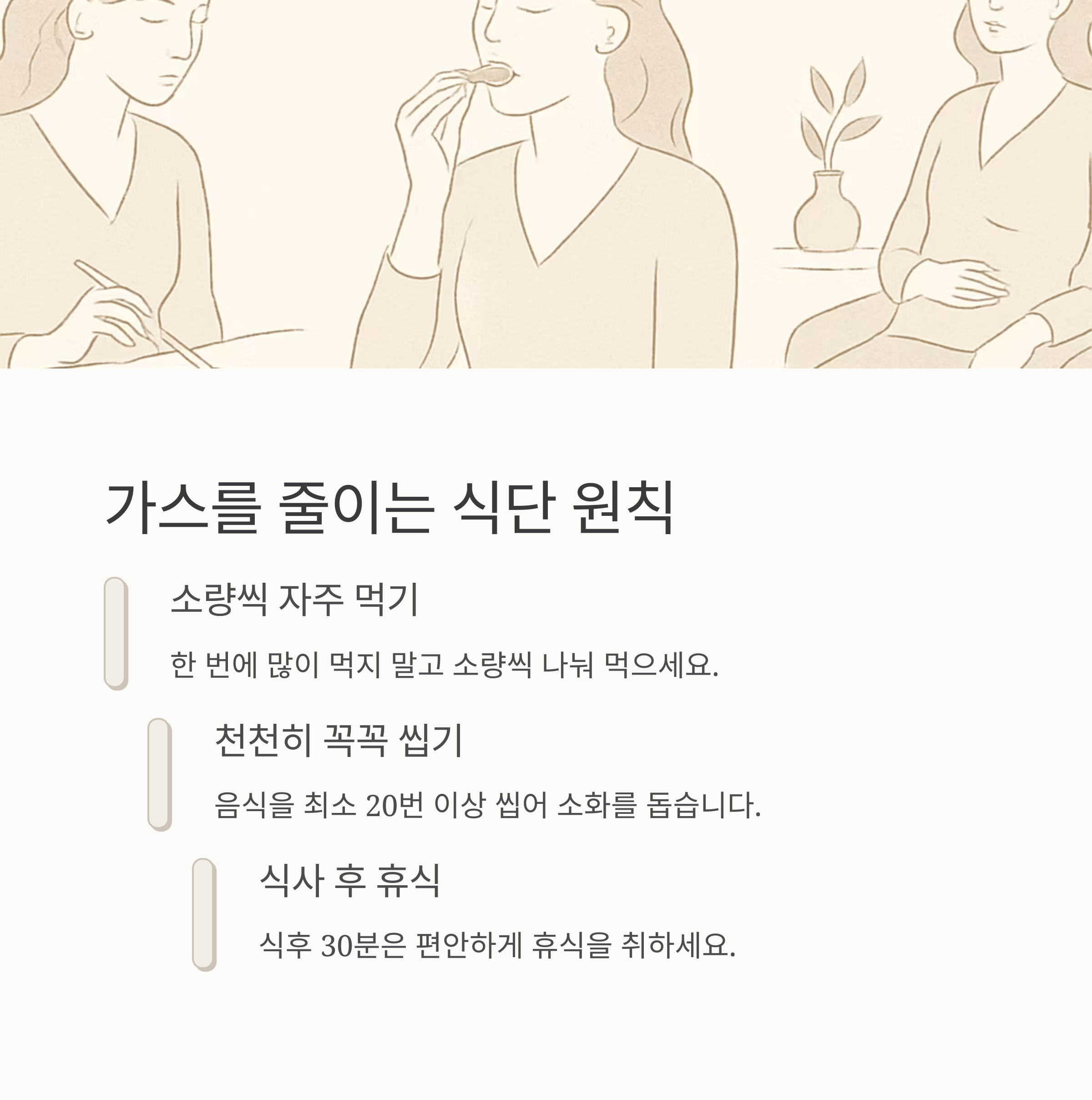 가스는 음식 때문만이 아니에요. 어떻게 먹느냐도 중요해요. 음식을 너무 빨리 먹거나, 얘기하면서 먹으면 공기를 많이 삼키게 되고, 그 공기가 가스가 되어 배에 쌓일 수 있어요. 과식도 문제죠. 소화 시스템이 감당하기 힘들 만큼 많은 양을 먹으면 소화가 제대로 안 되고, 음식물이 장 속에 오래 남아 가스를 더 많이 만들어 낸답니다.
