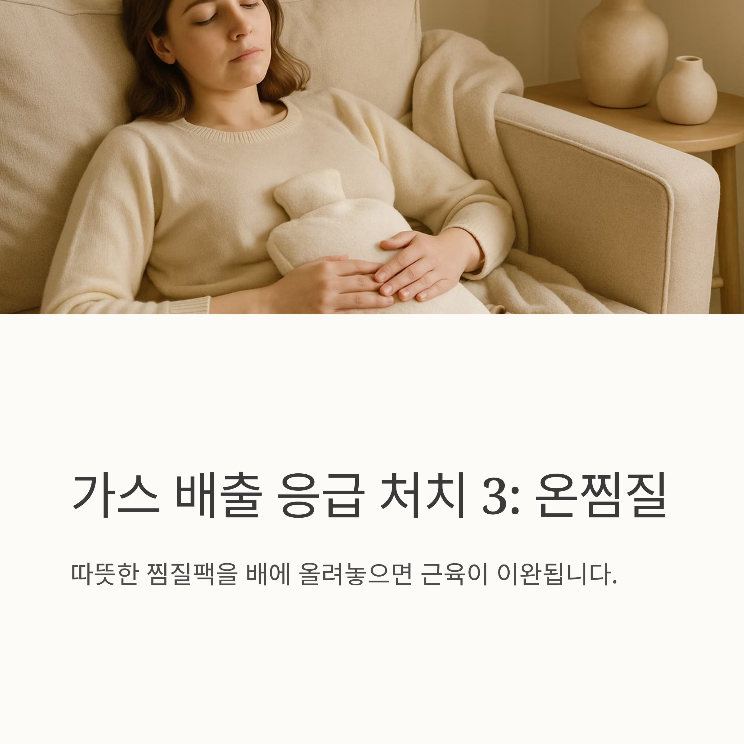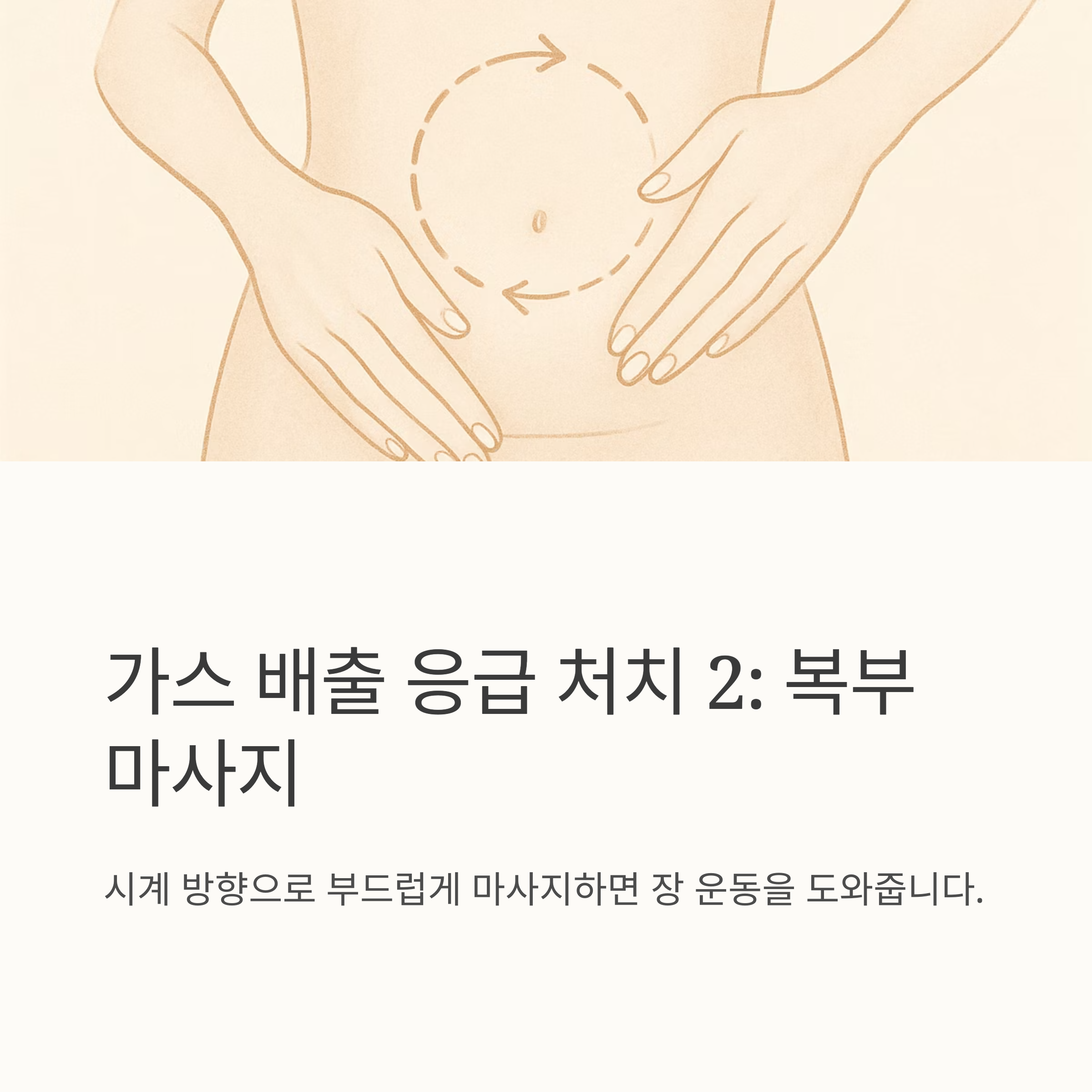 배가 너무 답답하면 바로 해결할 수 있는 방법들이 있어요. 따뜻한 물을 마시거나 복부 마사지를 해보세요. 시계 방향으로 부드럽게 마사지하면 장 운동을 도와 가스 배출에 도움이 된답니다. 온찜질도 좋아요. 따뜻한 찜질팩을 배에 올려놓으면 근육이 이완돼서 편안해진답니다.