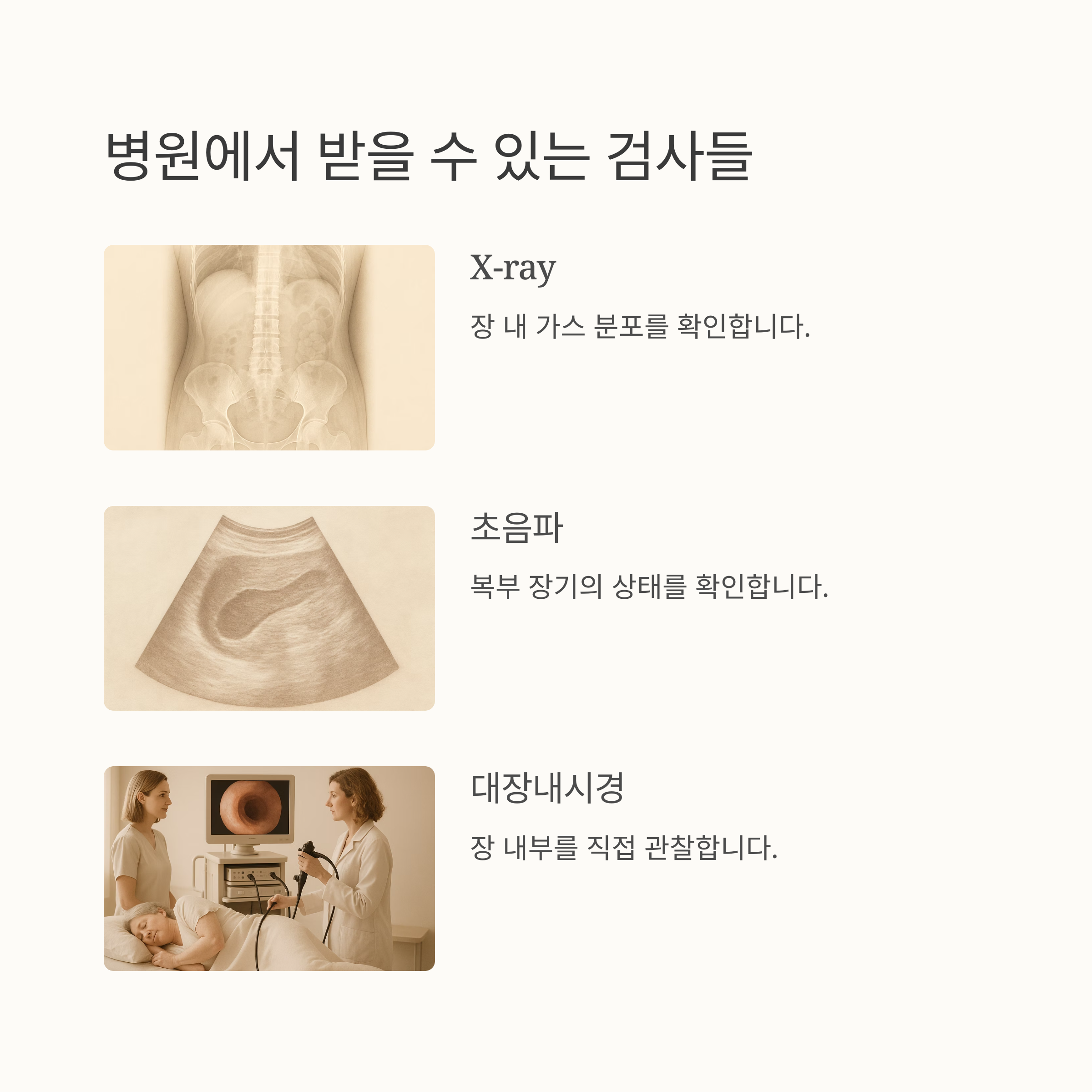 만성 가스는 과민성 대장 증후군이나 염증성 장 질환 같은 다른 질병의 신호일 수도 있거든요. 병원에서는 X-ray, 초음파, 대장내시경 등 여러 검사를 통해 문제의 원인을 찾고 적절한 치료를 해줄 거예요. 방치하지 말고 꼭 전문가의 도움을 받으세요.