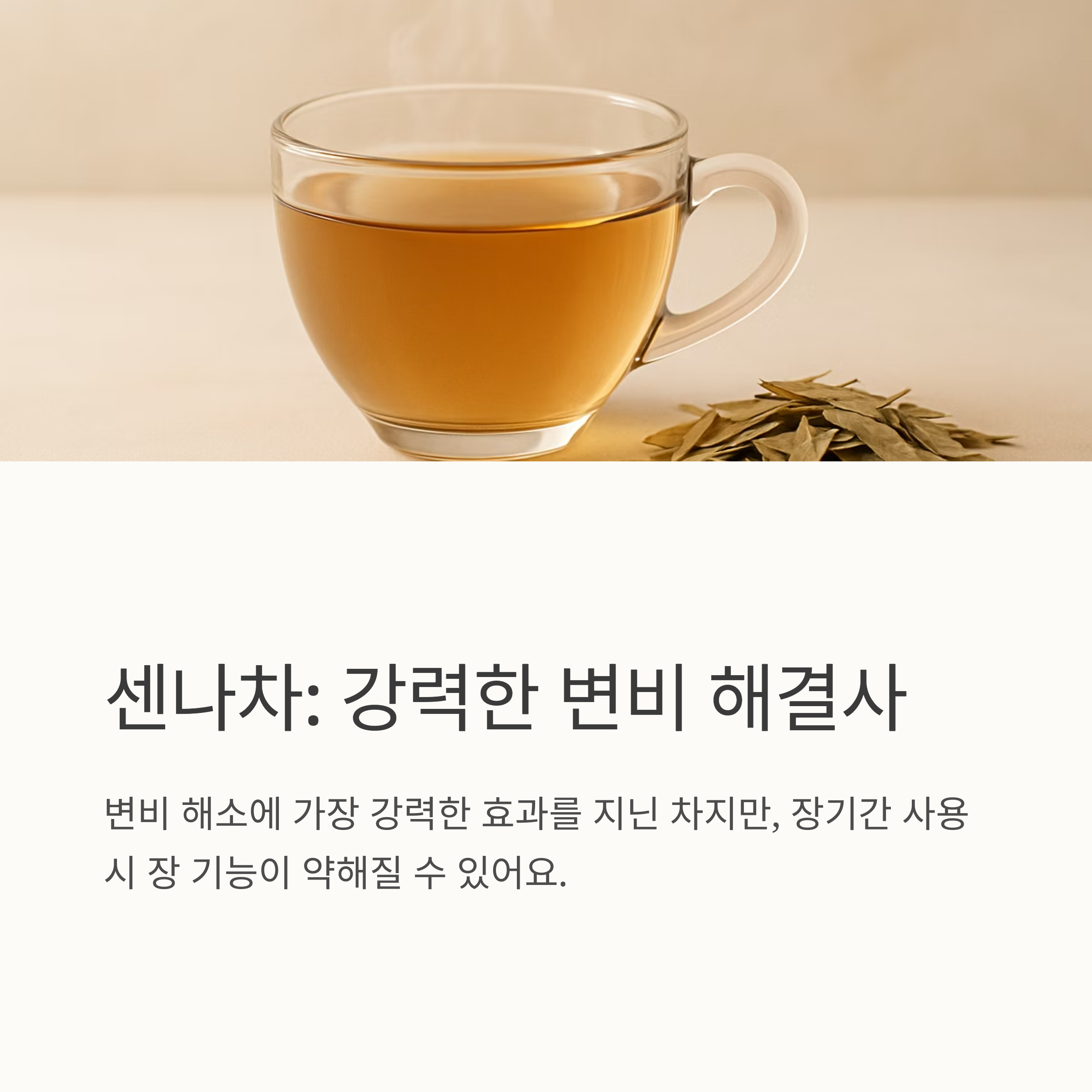 먼저, 센나차는 변비 해소에 강력한 효과를 지닌 차로 유명해요. 하지만 너무 자주 마시면 장에 무리가 갈 수 있으니 주의해야 해요. 루이보스차는 부드럽고 향긋한 맛으로 편안하게 마실 수 있는 차예요. 카페인이 없어서 잠자기 전에 마셔도 좋고, 장 건강에도 도움이 된다고 알려져 있죠.