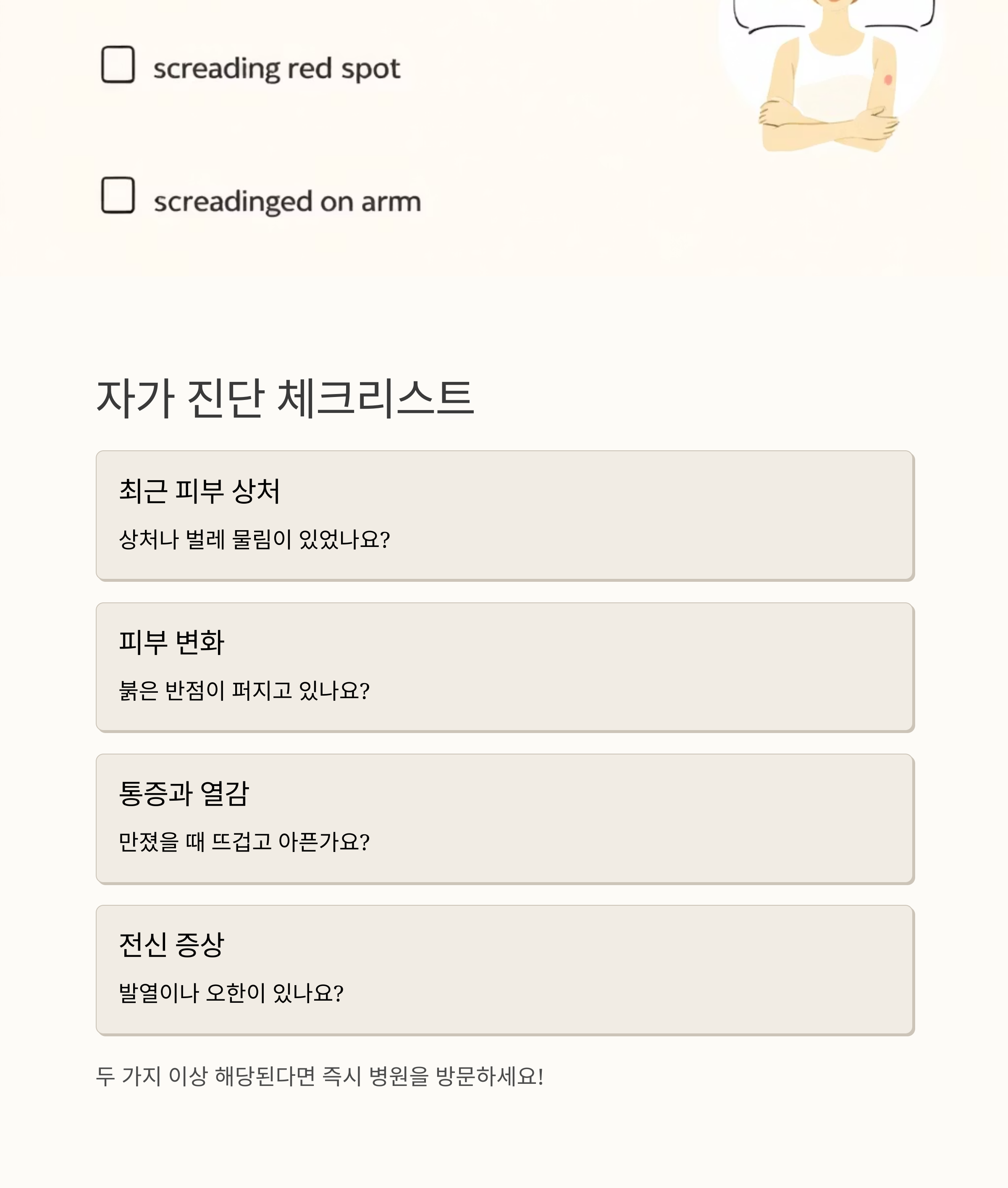 3. 병원 가야 할까요? 봉와직염 응급 상황과 자가 진단 체크리스트