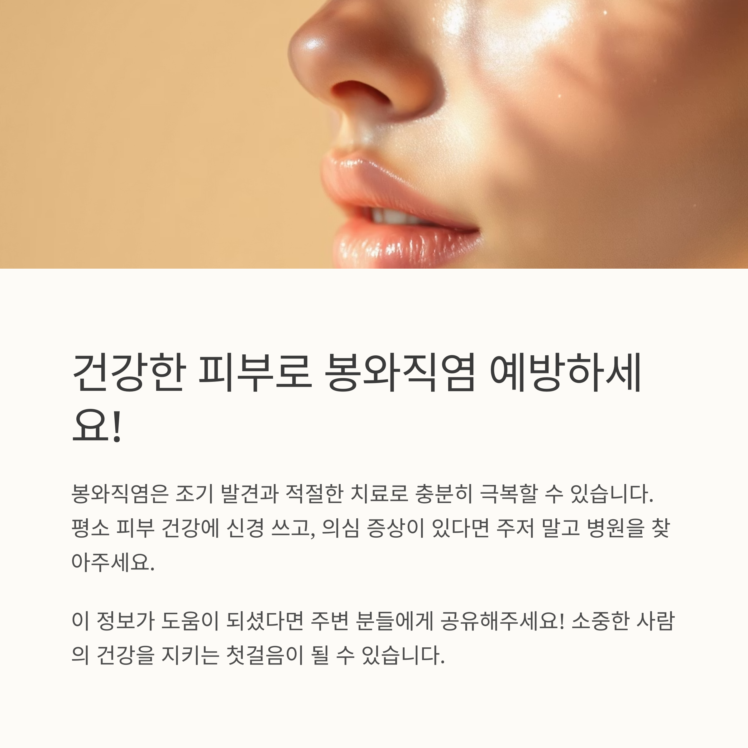 봉와직염은 무서운 질환이지만, 조기에 발견하고 적절한 치료를 받으면 충분히 극복할 수 있어요. 오늘 알려드린 정보가 봉와직염 예방과 관리에 도움이 되셨으면 좋겠습니다. 건강한 생활 습관을 유지하고, 평소 피부 건강에 더욱 신경 쓰는 습관을 가져보세요!