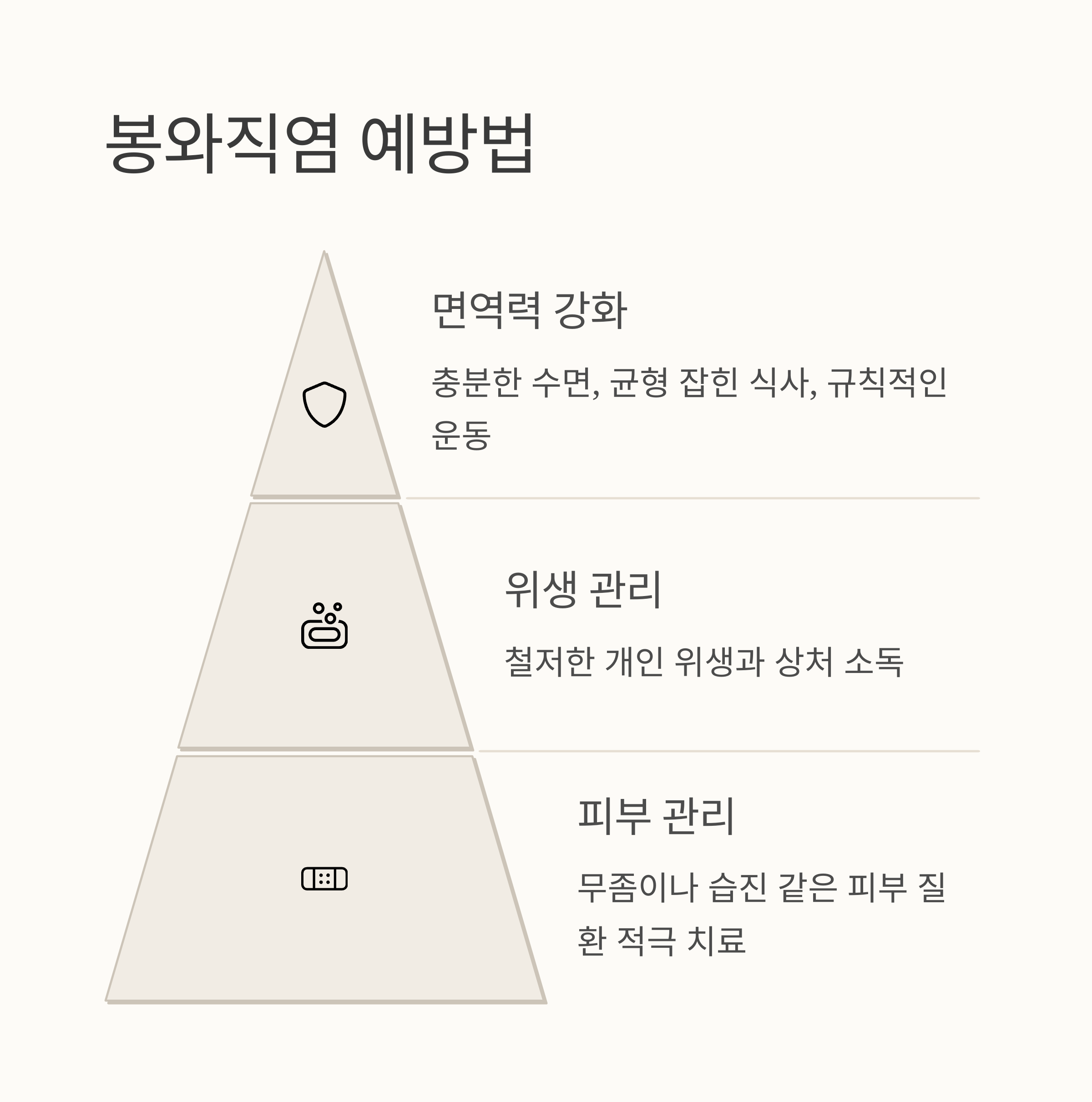 봉와직염은 예방이 가능한 질환이에요. 평소에 위생 관리를 철저히 하고, 면역력을 높이는 생활 습관을 실천하면 봉와직염 예방에 도움이 될 수 있어요. 작은 상처라도 소독을 잘하고, 무좀이나 습진 같은 피부 질환이 있다면 적극적으로 치료해야 해요.