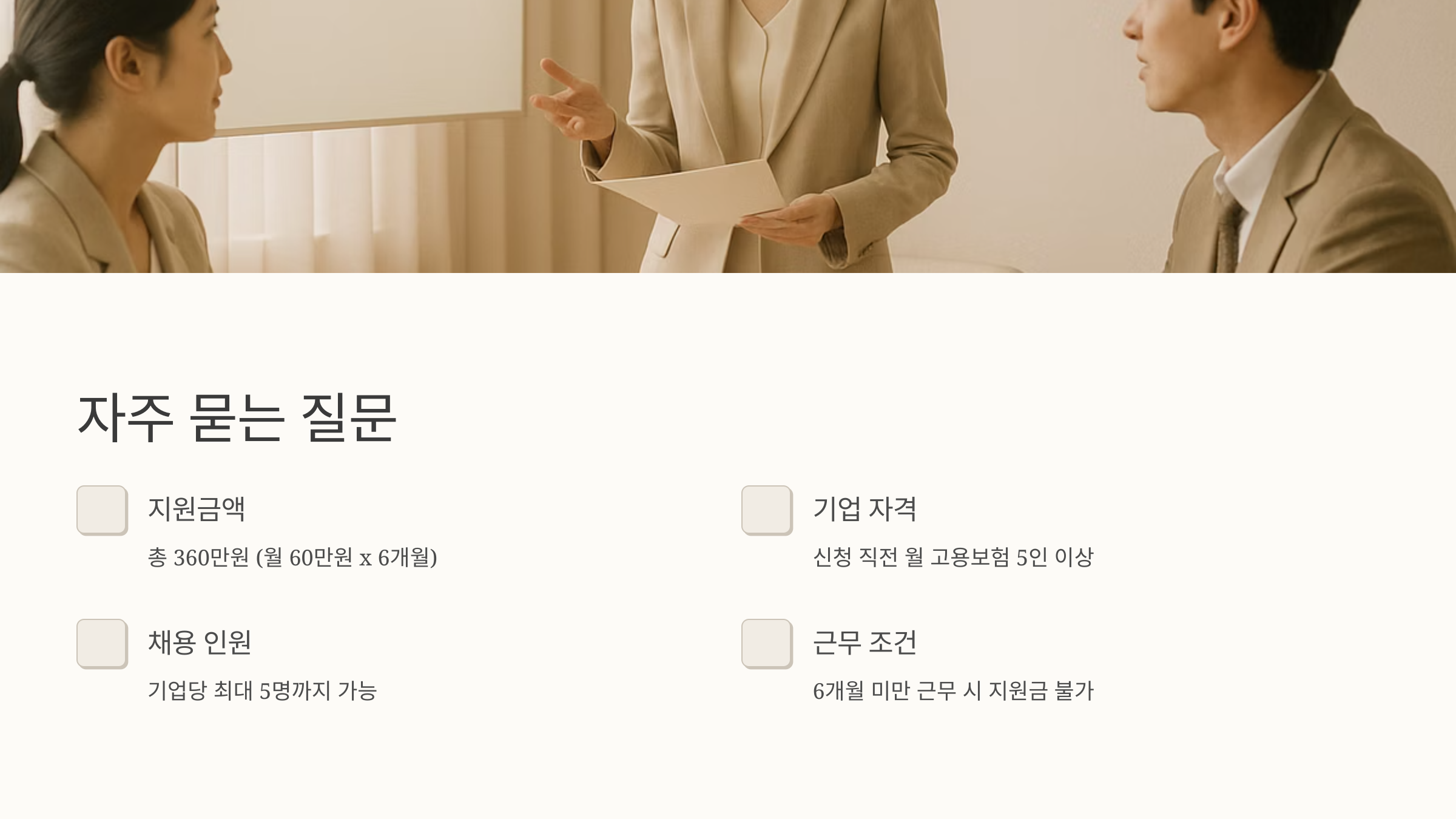 자주 묻는 질문들을 미리 준비했습니다. 혹시 궁금한 점이 있으시다면, 여기서 답을 찾아보세요. 가장 흔한 질문은 역시 지원금액에 대한 부분이죠. '180만 원'이라고 착각하시는 분들이 많은데, 월 60만 원씩 6개월이니까 총 360만 원입니다.