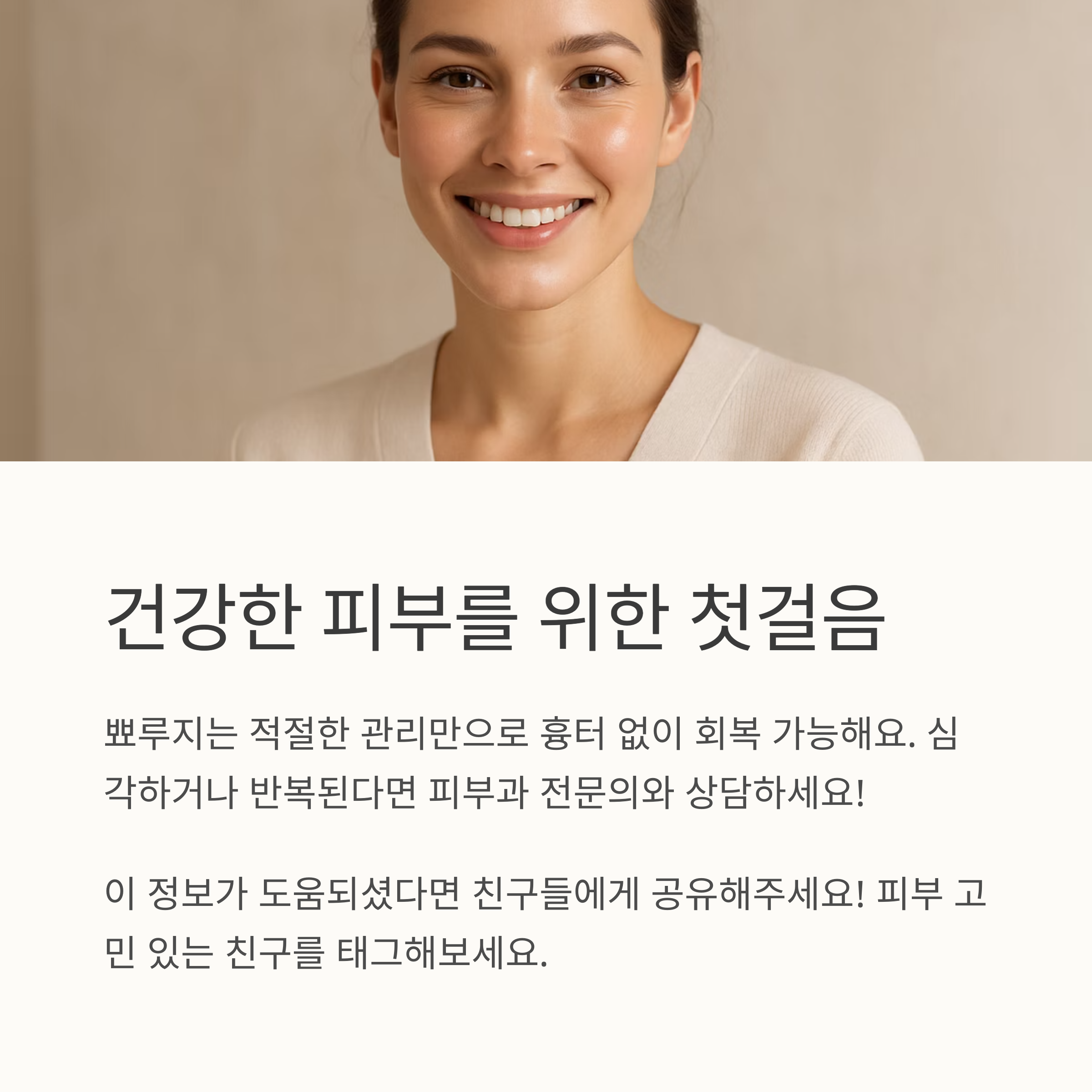 뾰루지 때문에 고민이 많으셨죠? 하지만 오늘 알려드린 정보들을 잘 활용한다면 걱정을 덜 수 있을 거예요. 뾰루지는 여드름과 달리 적절한 관리만 한다면 흉터 없이 빠르게 회복될 수 있어요. 하지만 심각하거나 반복적으로 발생한다면 피부과 전문의의 도움을 받는 것이 중요하다는 것을 잊지 마세요! 오늘부터 꾸준히 관리해서 건강하고 아름다운 피부를 유지하시길 바랍니다! 피부 트러블은 이제 우리에게 더 이상 스트레스가 아니에요.