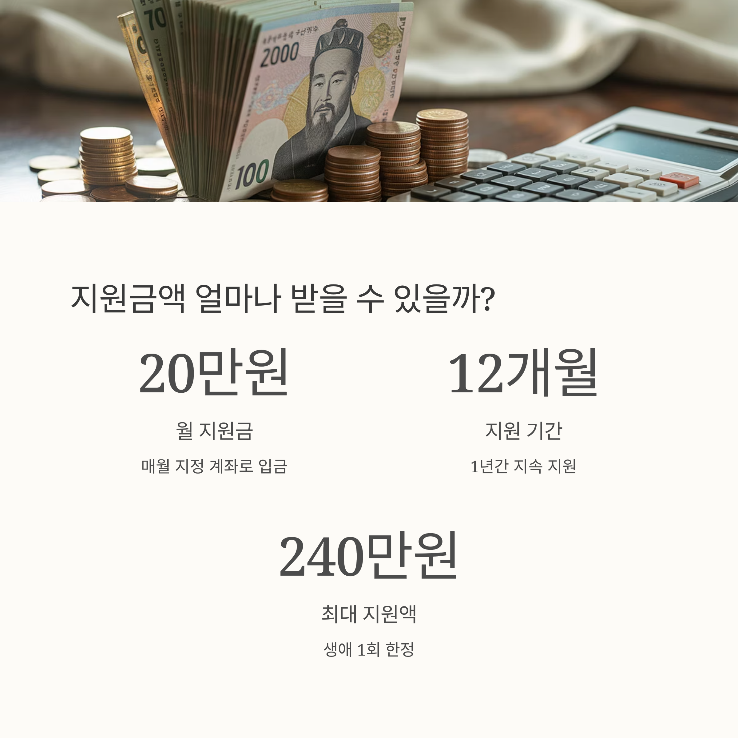 월세 지원금은 월 최대 20만 원이고, 12개월 동안 지원받을 수 있으니 최대 240만 원까지 받을 수 있다는 엄청난 혜택이 있어요! 하지만 생애 단 한 번만 지원받을 수 있으니, 신중하게 생각하고 신청하세요.