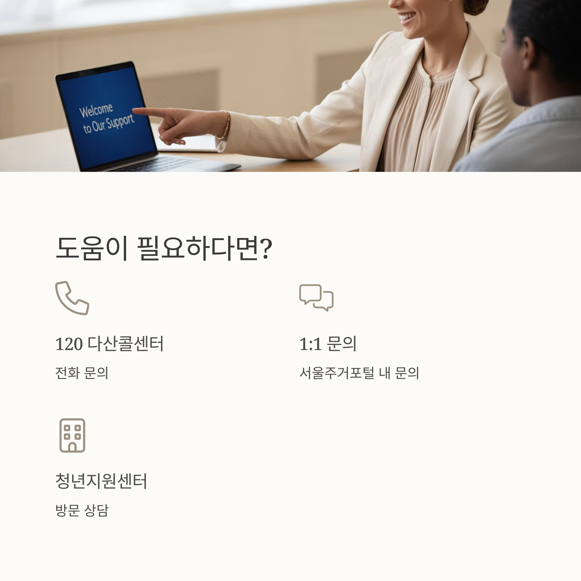 만약 선정되지 않더라도 좌절하지 마세요! 탈락 사유를 확인하고, 다음 신청을 위한 개선점도 함께 안내받을 수 있답니다. 궁금한 점이 있다면 120 다산콜센터나 포털 내 1:1 문의, 자치구 청년지원센터 등을 통해 문의하면 친절하게 도와줄 거예요. 그리고 이사나 계약 변경 등 주거지 변동 사항이 발생하면 꼭 신고해야 한다는 점 기억하세요!