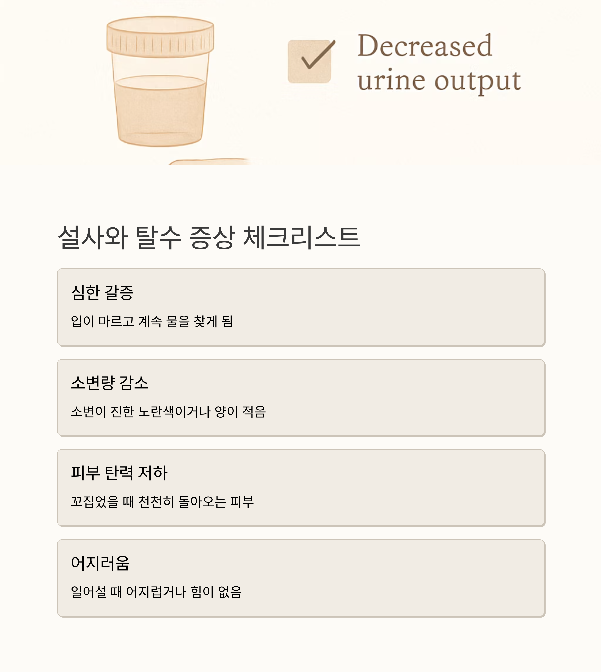장건강을 위한 식품, 증상 체크리스트, 설사극복